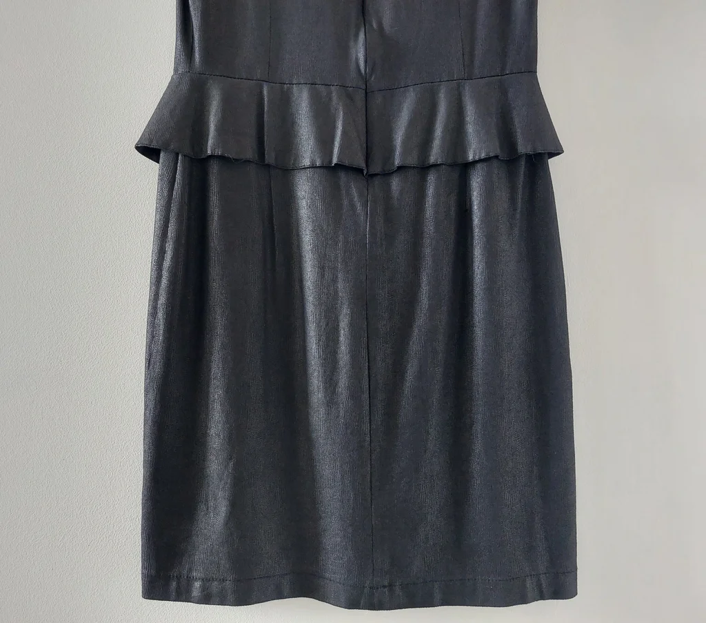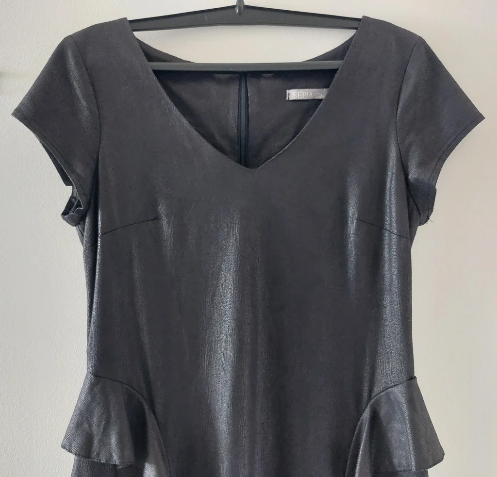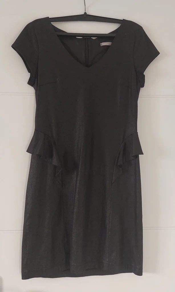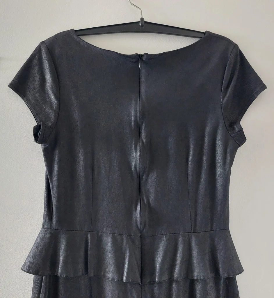 🌿 Merci de bien lire le descriptif dans son entièreté et regarder chaque photos. ✨️ Robe en très bon état, matière ayant un aspect texturé et satiné. L aspect satiné ressort plus ou moins selon la luminosité. ✨️ Taille: S/36. ✨️ Longueur: ≃ 86 cm. ✨️ Couleur: noir. ✨️ Matières: polyester et élasthanne.