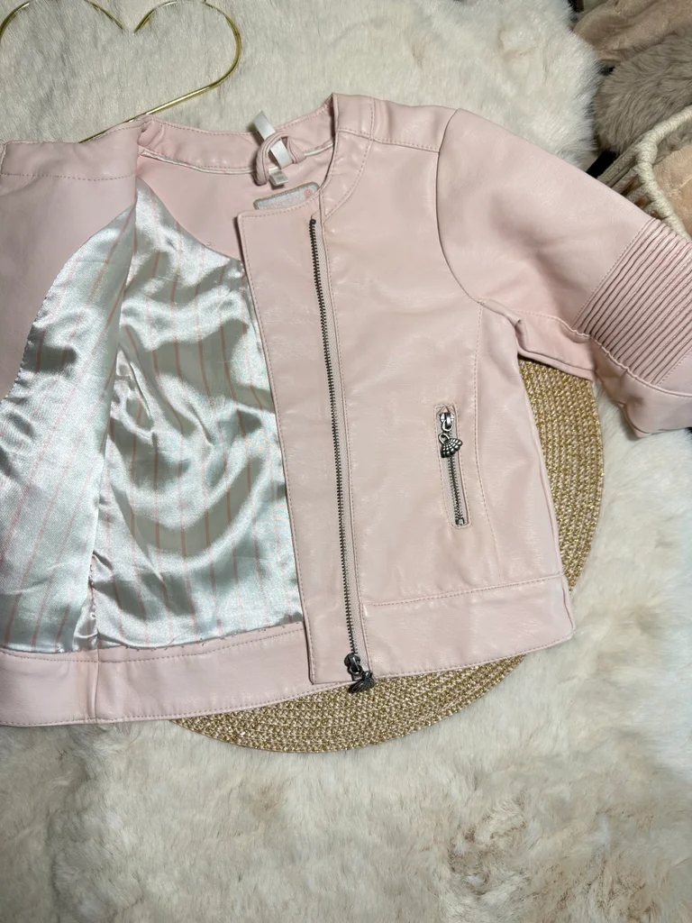 Veste similicuir Orchestra , rose poudrée 🧸 Taille 23 mois - 86cm 🧸 Très bon état ( trace aux fermetures voir dernière photo )