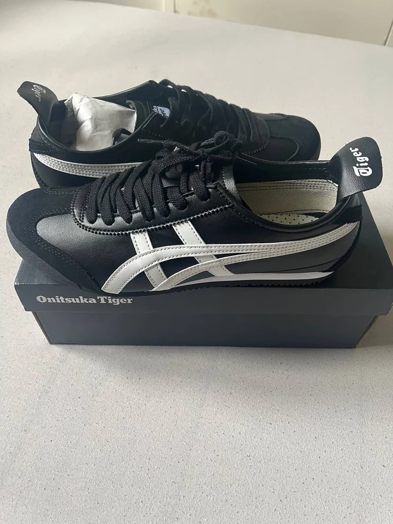 Sneakers Onitsuka Tiger Mexico 66 Coloris : Black / White Pointure : 43.5 Tige cuir lisse noir premium Bandes latérales blanches iconic Tiger Semelle caoutchouc crantée Languette logo Tiger Avec boîte originale 📦 NEUF / Comme neuf ✅ Coloris black/white intemporel 🖤🤍 Icône du streetwear japonais 🐯