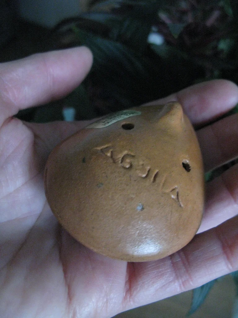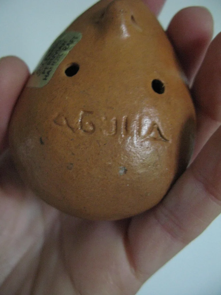 PRIX NON NEGOCIABLE - MONDIAL RELAY UNIQUEMENT Instrument de musique péruvien Ocarina Flute en terre cuite fait main signée AGUILA pérou l'instrument n'est pas cassé ni ébréché. a juste été utilisé en décoration