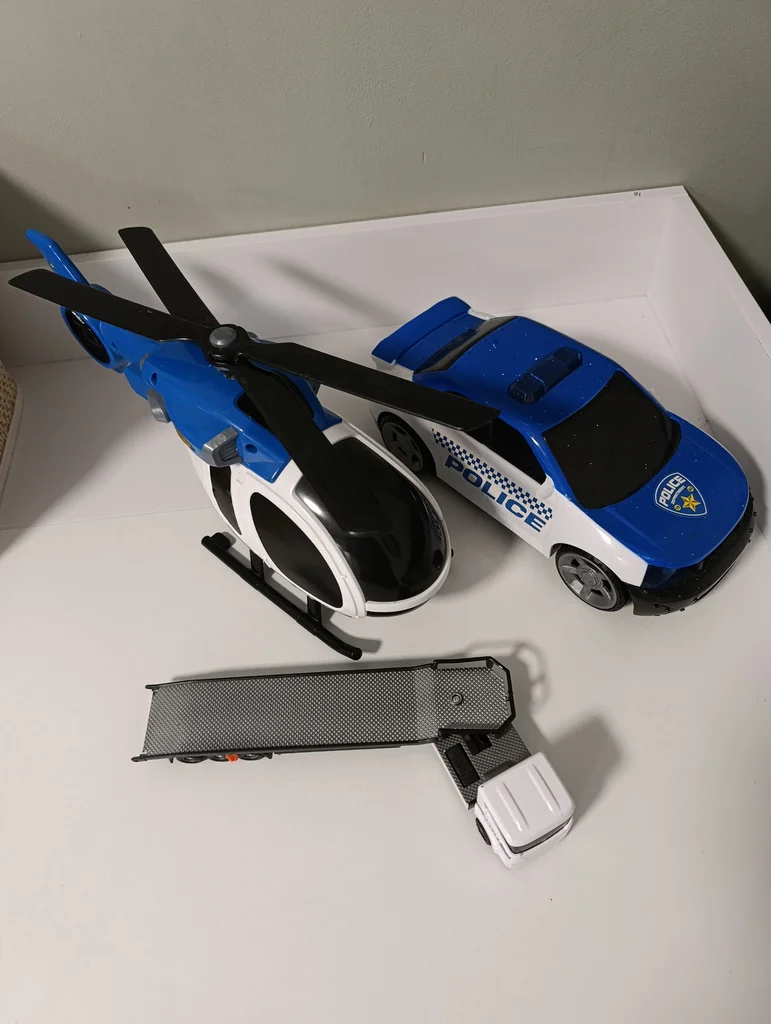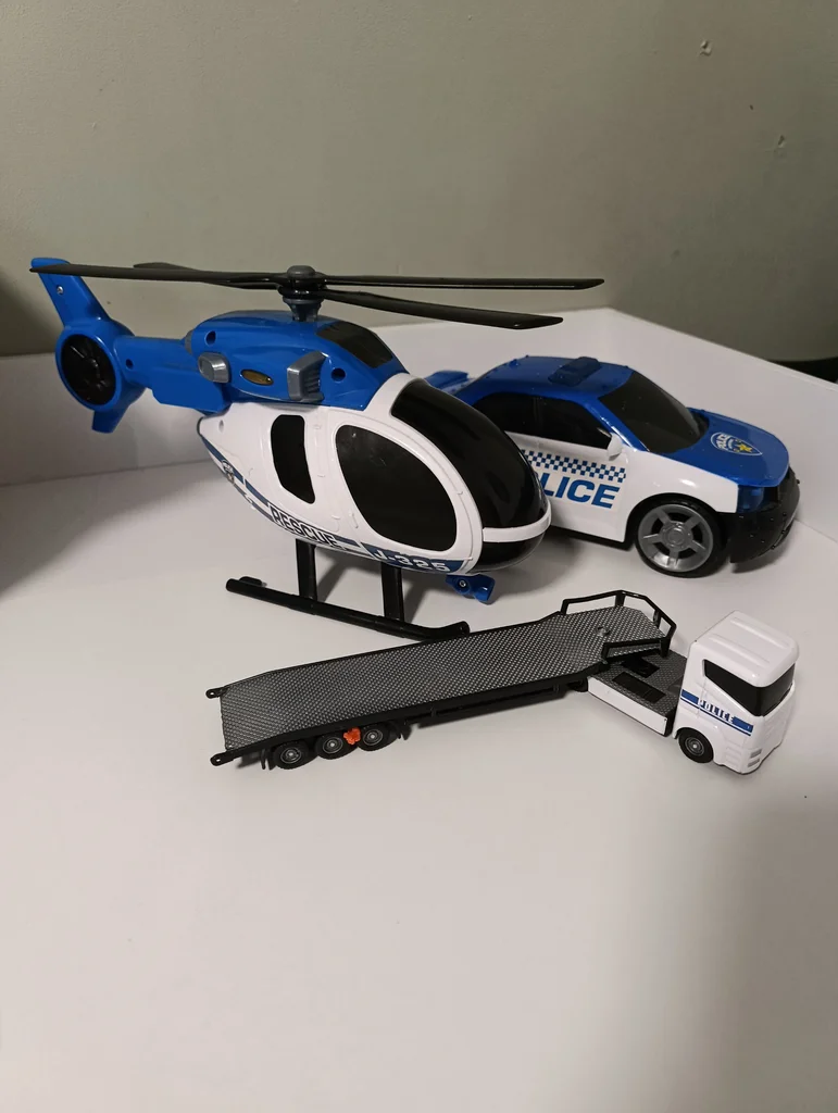 Véhicules de police. L'hélicoptère est sonore