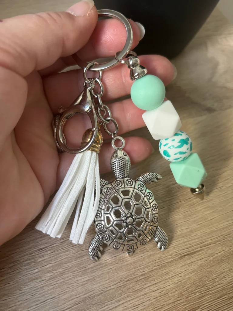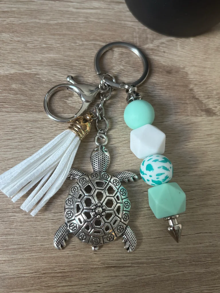 Porte-clés Bijou de Sac - Tortue & Perles Silicone Magnifique porte-clés (ou bijou de sac) au style bohème et zen. Parfait pour personnaliser vos clés ou décorer un sac à main ! Neuf, fait main #amandine28120porteclés #portecles #bijoudesac #tortue #boheme #accessoirefemme #perlesilicone #menthealeau #cadeau #stylemarin #pompon #grigri #portebonheur