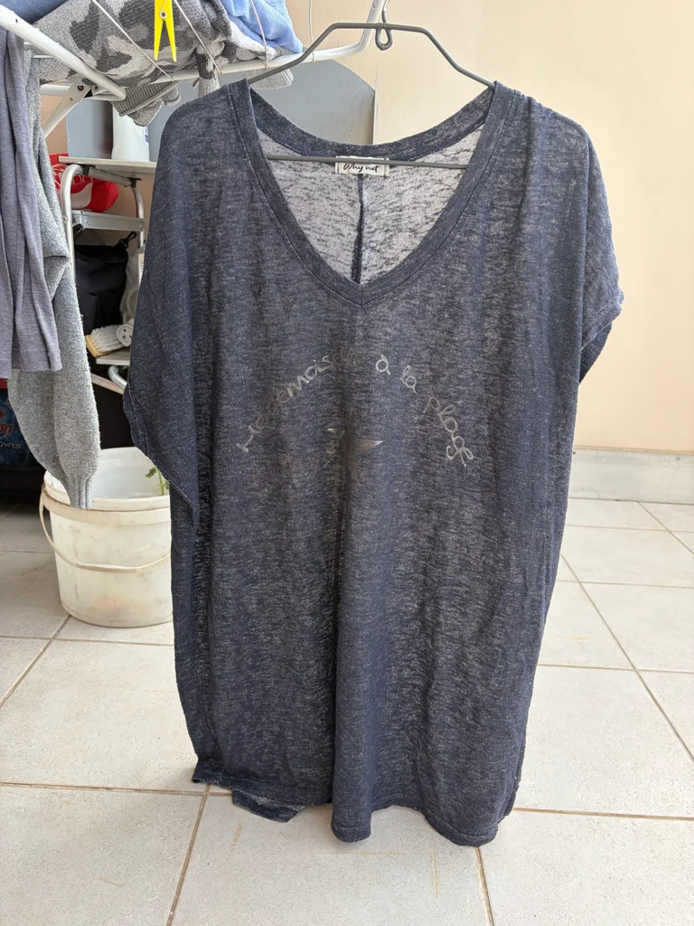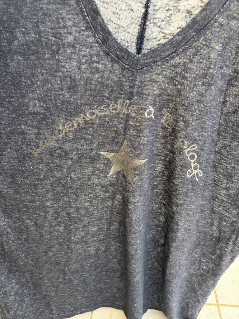 TEE shirt mademoiselle a la plage bleu gris Achetée dans une boutique italienne. Taille unique