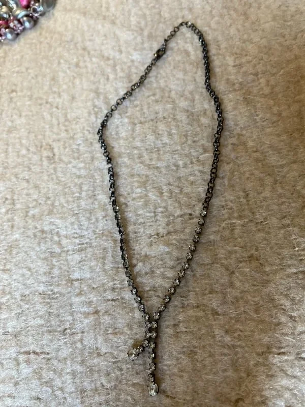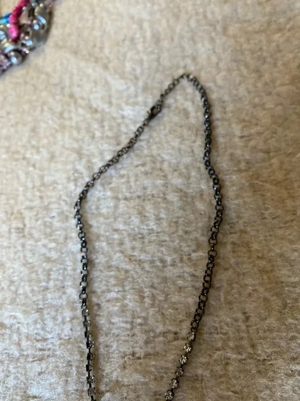 Collier fin à strass noir et blanc Fraichement arrivée sur OPLA, mais très forte expérience en vente en ligne ! Négociation possible, colis bien emballé et envoyé rapidement ! Testez et faites nous part de votre avis pour bien débuter ! (un petit fav pour l'algo? <3)