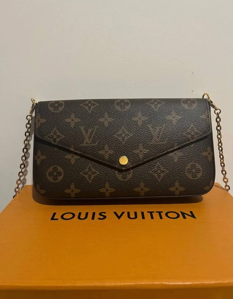 Sac Louis Vuitton Pochette Félicie Monogram Canvas / Dorures or Toile monogramme LV iconique Rabat enveloppe bouton-pression doré Chaîne dorée amovible Intérieur 2 compartiments Pochette intérieure amovible Boîte Louis Vuitton incluse 📦 Pièce de luxe authentique 🏆 État : Très bon état ✅