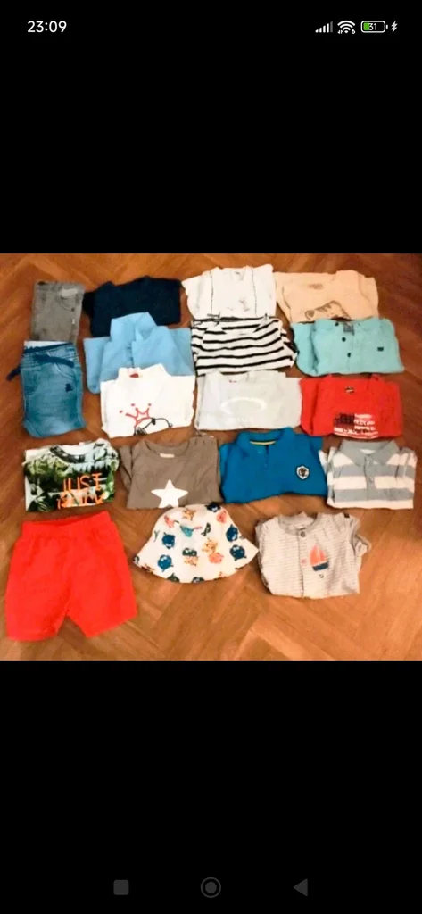 Bonjour 🌸 Je vends un lots de vêtements garçon 6 mois, en très bon état, juste pas repasser ! 2 jeans 1 short 2 bobs 1 combishort 10 Tshirt Manche courte 4 t-shirt manche longue 1 pull 2 ensemble 1 combishort 4 pyjamas 8 bodies manches courtes... Envoie rapide 🙂 Différentes marques (gemo, kiabi, tape à l'oeil, in extenso, bout'chou...)