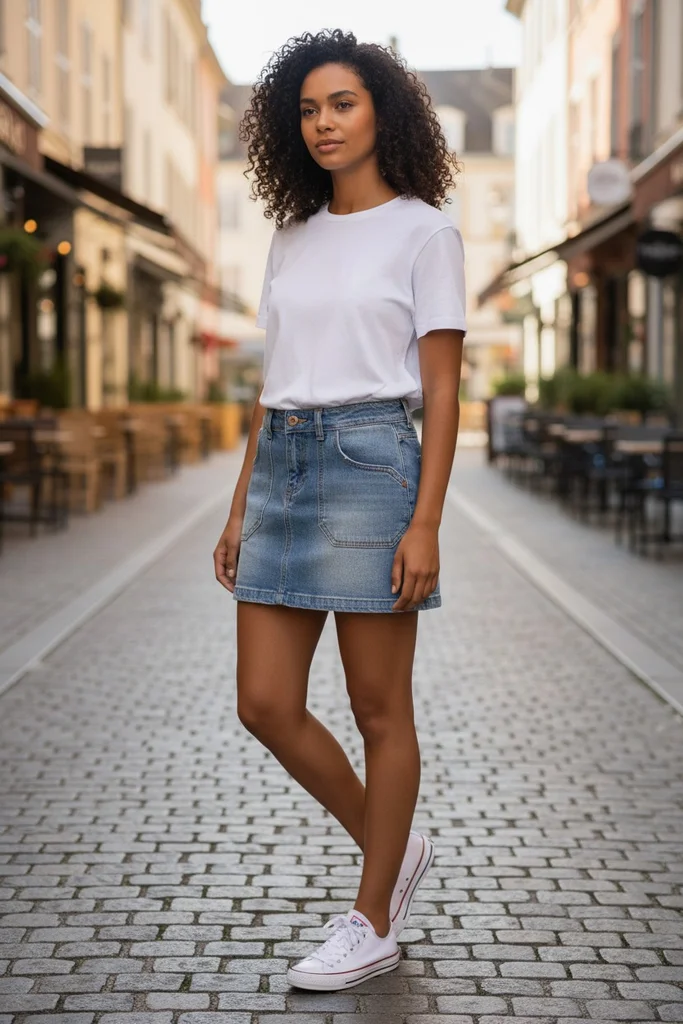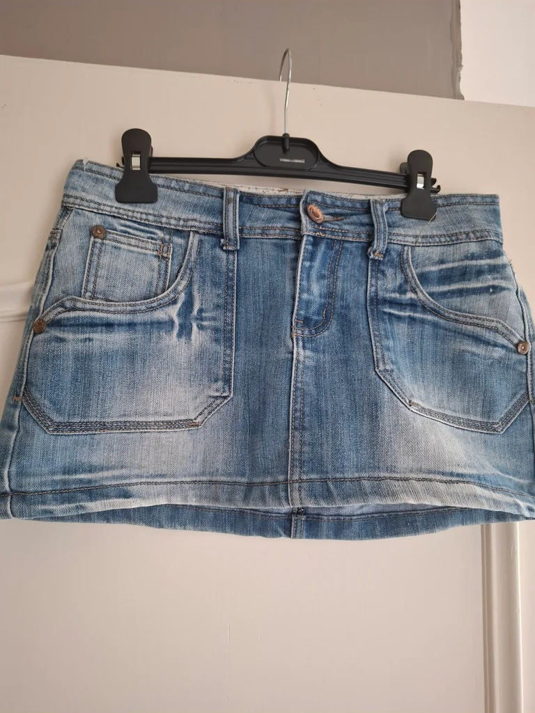Mini jupe en jean's. Délavée. Poches devant et derrière.