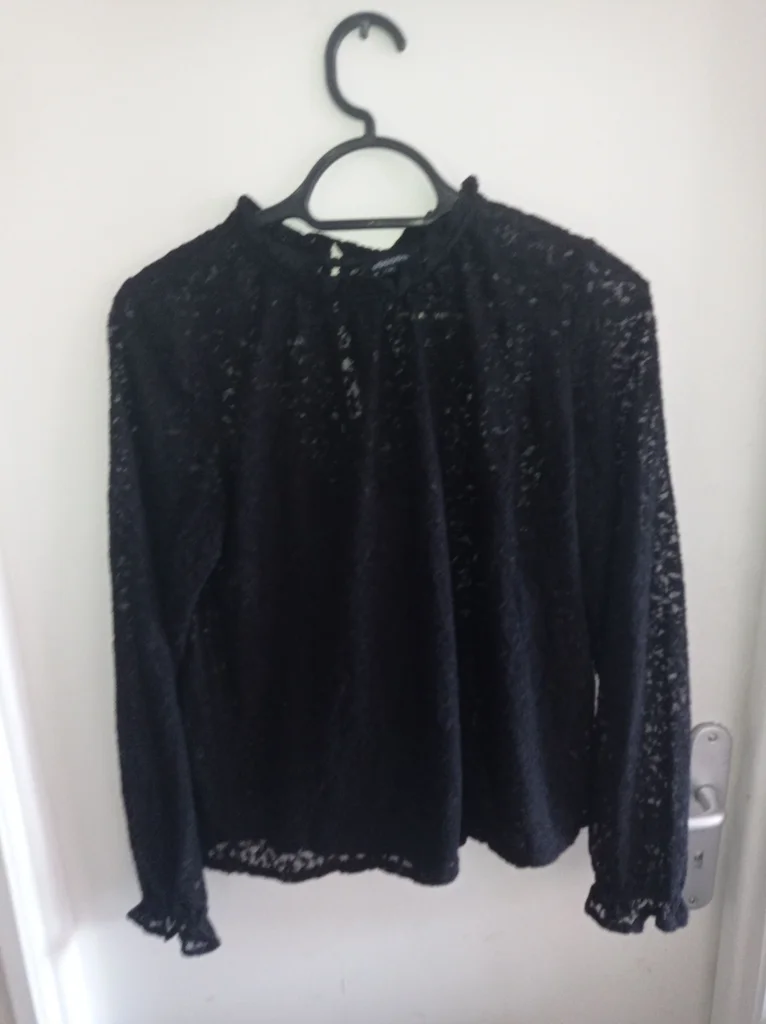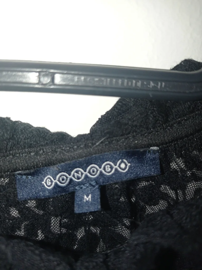 Superbe Blouse Noire en Dentelle Bonobo avec Caraco Intégré - Taille M ⭐ Description : Hello les Vinties ! ✨ Je me sépare de cette magnifique blouse noire de la marque Bonobo. Elle est très élégante et parfaite pour un look chic et féminin ! 😍 ✨ Les points forts : Dentelle raffinée : Un motif floral délicat sur tout le haut. Caraco inclus : Plus besoin de chercher quoi mettre dessous, il y a un top fluide à fines bretelles cousu à l'intérieur pour un maximum de confort et zéro transparence. 💡 Col montant : Type col cheminée avec de jolis détails froncés. Manches longues : Poignets élastiqués finis par de petits volants trop mignons. 🎀 Fermeture dos : Une petite ouverture goutte d'eau discrète dans la nuque avec un bouton discret. C'est une pièce très facile à porter : sublime avec un jean pour un look casual-chic, ou avec une jupe pour une soirée ! 👠👖 📐 Détails pratiques : Marque : Bonobo Taille : M (38), taille normalement. État : Très bon état, peu portée. N'hésitez pas si vous [Description tronquée]