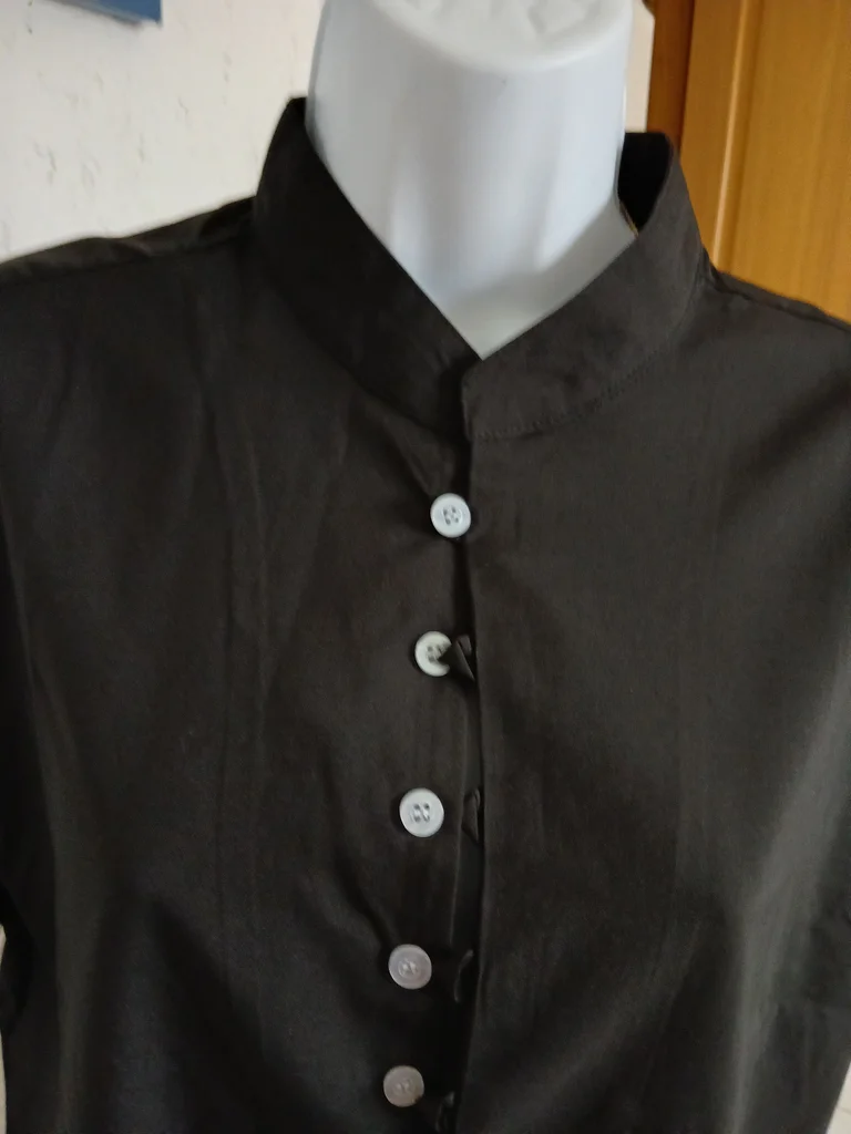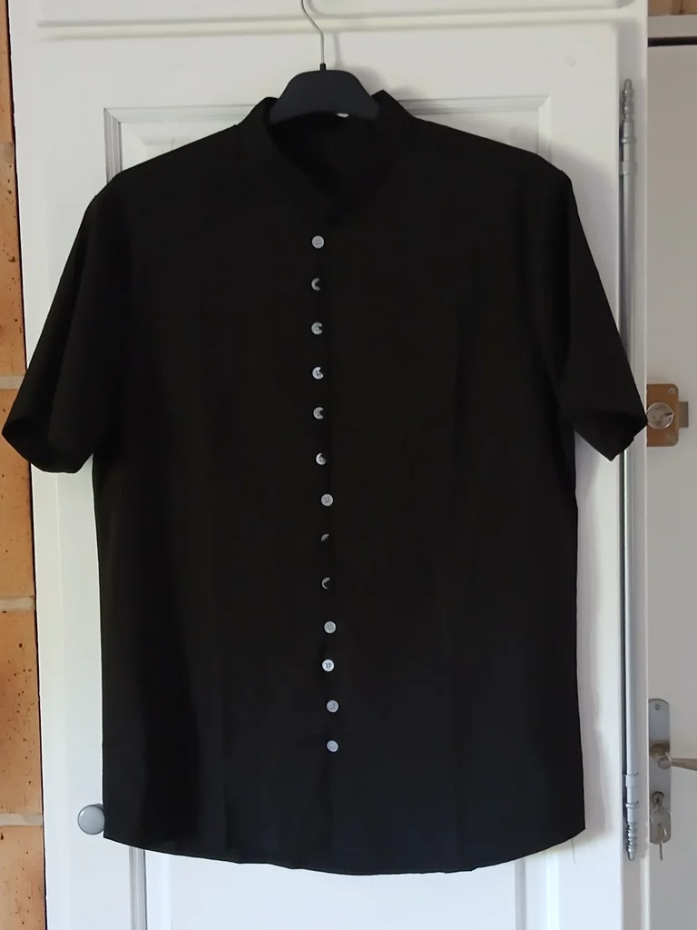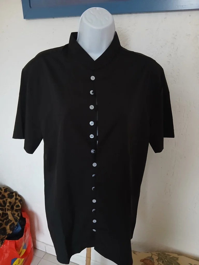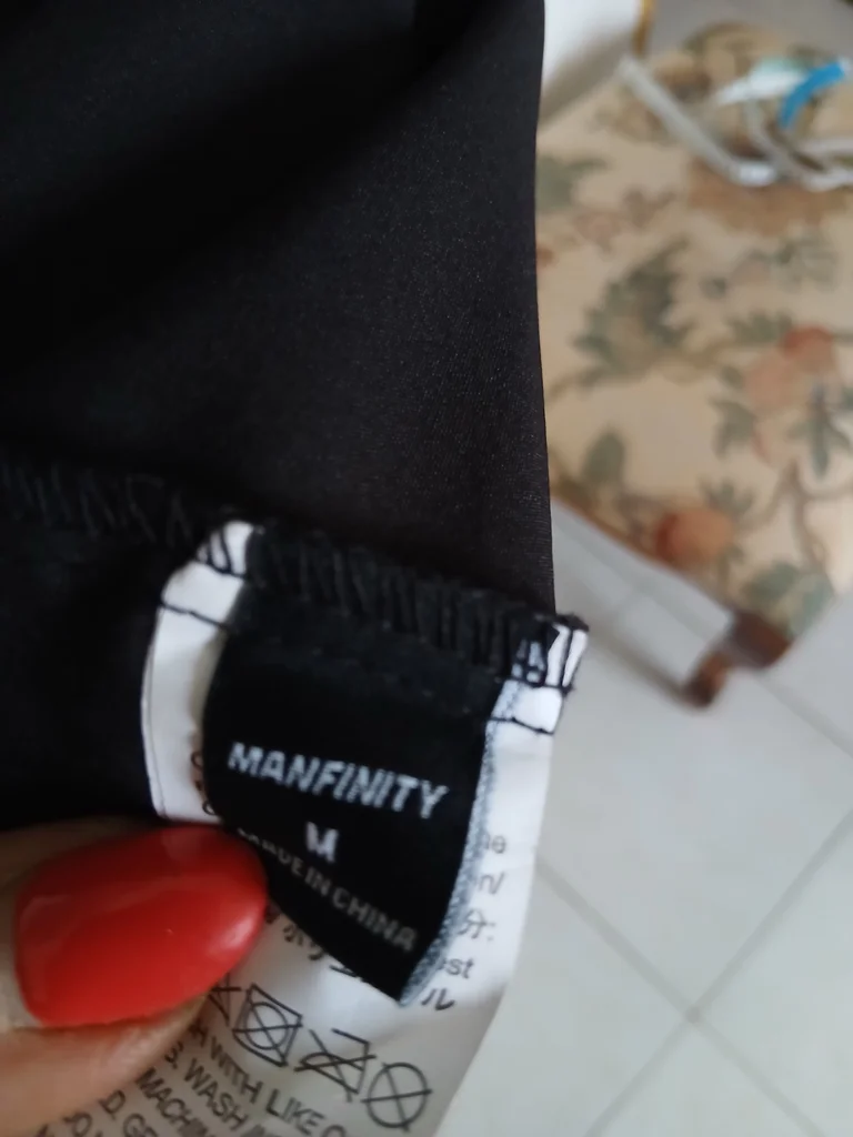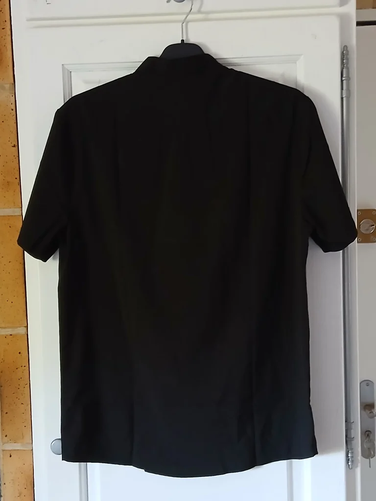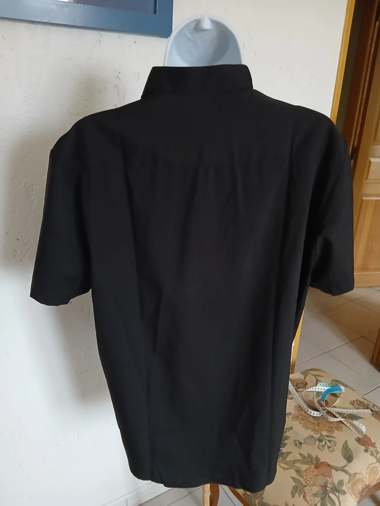 Chemise noire col mao MANFINITY – État impeccable – Taille M ou L Description : Sublimez votre style avec cette chemise noire intense de la ligne MANFINITY. Un basique indispensable, à la fois minimaliste et élégant, parfait pour une tenue chic ou décontractée. ✨ Points forts : Coupe moderne : Col mao (officier) pour un look épuré et contemporain. Détails soignés : Boutonnage vertical serré avec boutons contrastants gris perle qui apportent une touche d’originalité. Matière : 100% Polyester, fluide, légère et surtout infroissable (idéal pour ne pas avoir à repasser !). Couleur : Un noir profond et vibrant qui ne bouge pas au lavage. 📏 Dimensions précises (à plat) : Épaules : 44 cm Aisselle à aisselle : 50 cm Longueur totale : 75 cm État : Comme neuve, excellent état #Manfinity #ChemiseHomme #ColMao #ChemiseNoire #ModeHomme #StyleMinimaliste #ChicEtDecontracte #TailleM #BlackShirt #VêtementHomme #LookModerne #MandarinCollar #BasicChic