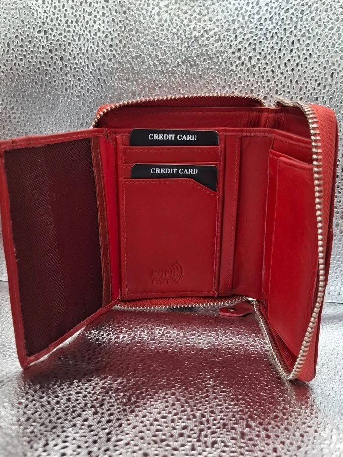 Superbe portefeuille pour femme ou homme de la marque italienne Leonardo Verrelli. 100% Cuir véritable de haute qualité, coloris rouge vif élégant. Technologie RFID SAFE intégrée pour protéger vos cartes bancaires contre le piratage à distance. Grand compartiment zippé pour la monnaie, nombreux emplacements pour cartes de crédit et billets. Compact et complet, se glisse facilement dans un sac ou une poche Neuf, jamais utilisé. Livré dans sa boîte d'origine Un accessoire chic, sécurisé et durable. Idéal pour un cadeau ou pour se faire plaisir. Envoi très rapide sous 24h et emballage soigné