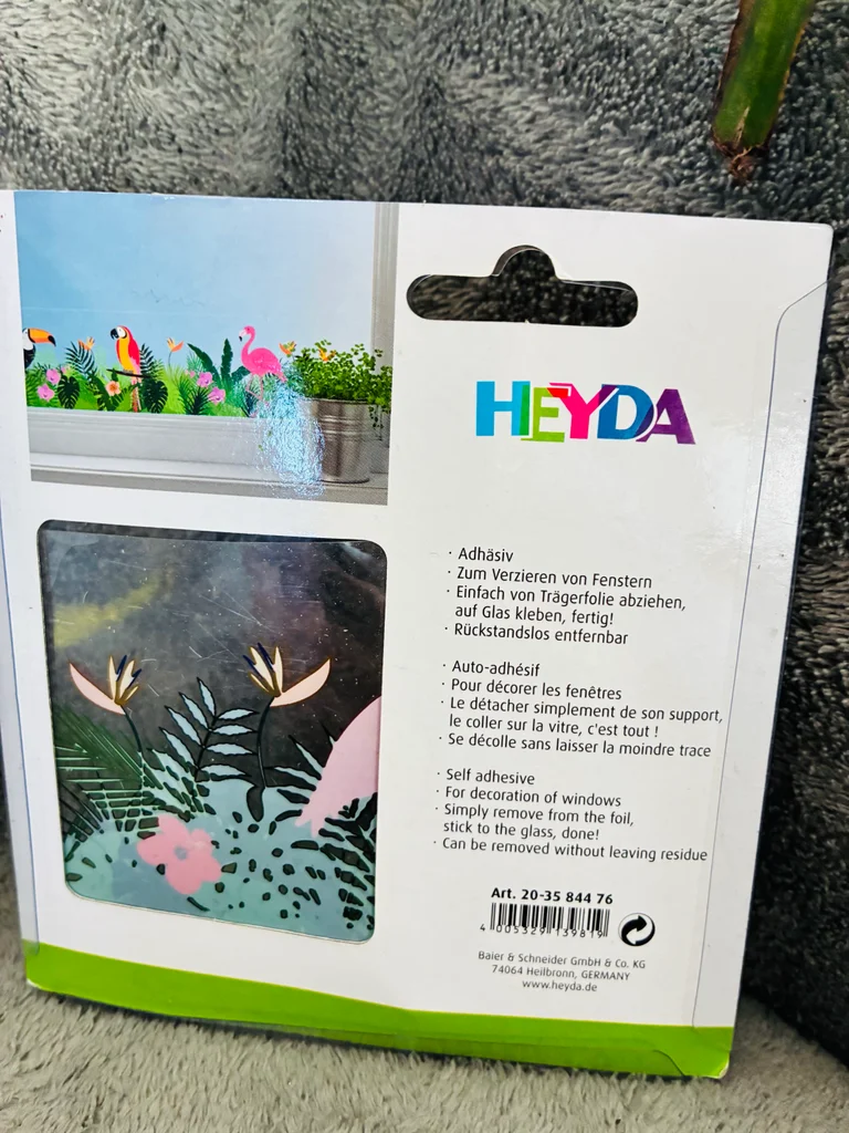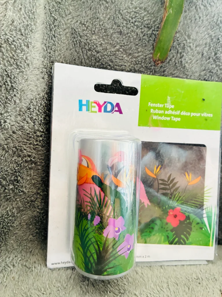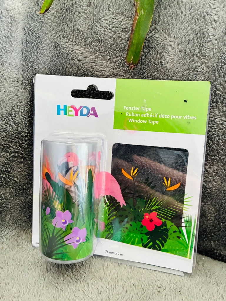Bande autocollante / ruban adhésif pour fenêtre Thème tropical / exotique Effet transparence pour une jolie décoration ou camoufler une partie de fenêtre Neuf (acheté mais traînant dans le placard : il a besoin d’un prolétaire digne de ce nom 😉) Marque : Heyda Dimensions : 76mm x 2m #stefetjuju51divers maison non fumeurs bien d’autres choses dans mon dressing de nouveaux articles très régulièrement nombreux # dans mon profil pour faciliter vos recherches merci pour votre visite et belle journée ☺️ #decoration #fenetre #exotique #tropicale