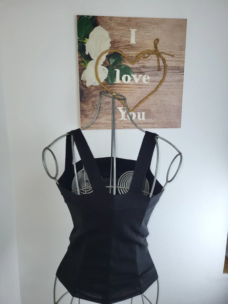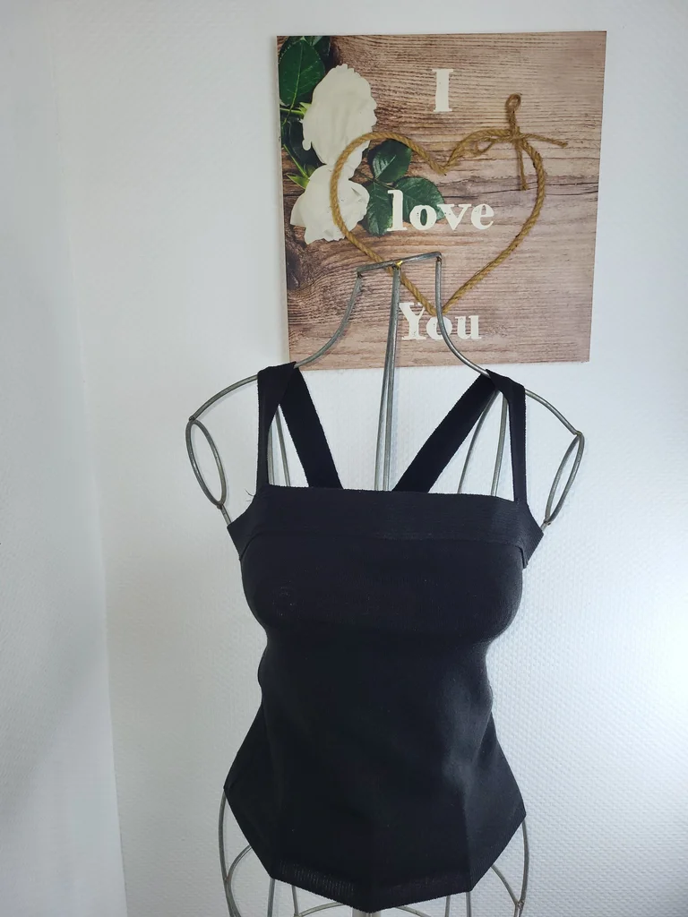 Description : Vends un magnifique top noir sans manches de la marque Trame d’Autore. Une pièce très élégante avec un col rond et un superbe travail de plis architecturaux sur le buste qui structurent la silhouette avec chic. Détails : Taille : 34 (XS). Col : Col rond simple. Finitions : Plis verticaux graphiques pour un effet de relief très sophistiqué. Coupe : Coupe droite et fluide. État : Très bon état. 🚀 LIVRAISON : Envoi via Mondial Relay Je dépose les colis tous les jours ! ✨ N'hésitez pas à regarder mes autres articles pour créer un lot !