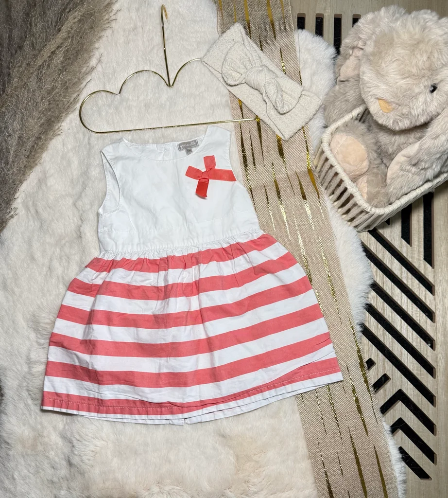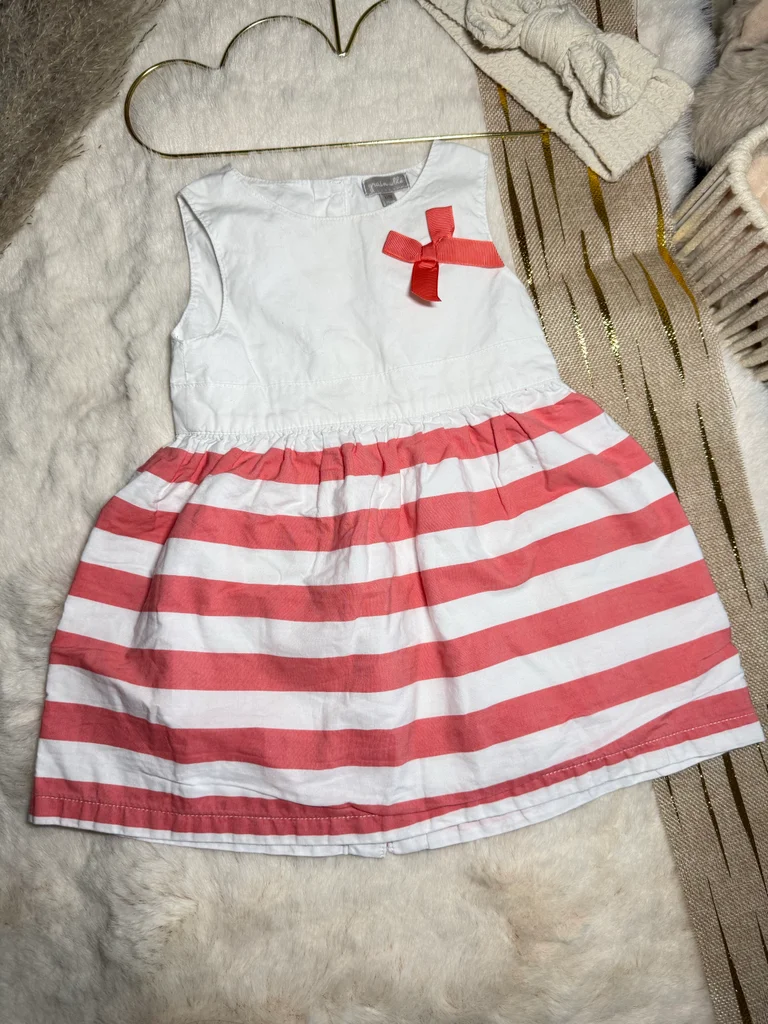 Robe d’été , sans manches - blanche rayé rouge Grain de blé 🧸 Taille 12 mois - 74cm 🧸 Très bon état