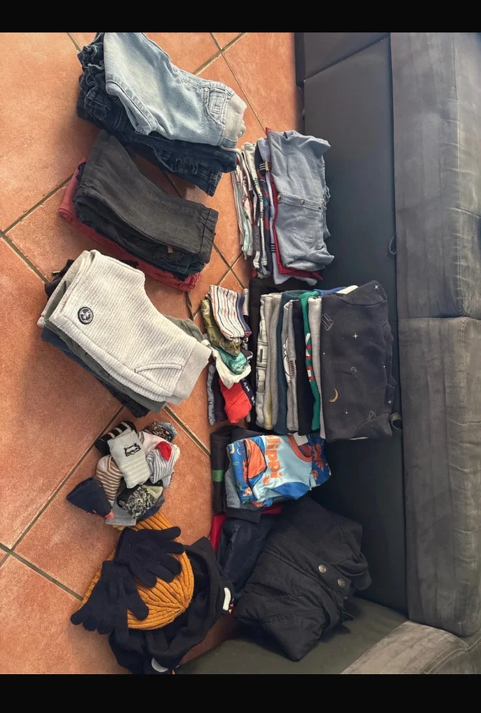 Vends gros lot de vêtements, garçon, 3/4 ans avec sous-pull, T-shirt manches longues, chemise manches longues pull fin gros pull pyjama, blouson coupe-vent gants bonnet cache cou, cagoule, short, pantalon, jean, jogging, boxer, chaussettes ce lot contien 66 article , les vêtements ont été portés mais peuvent largement être encore portés peut-être quelques taches mais certainement invisible car je n’en ai pas vu sauf sur un petit pull mais pas gênant pas de trou la plupart sont des DPAM manteau Zara Boy dans une maison non-fumeur avec linge entretenue, les vêtements ont été lavé avant d’être envoyé