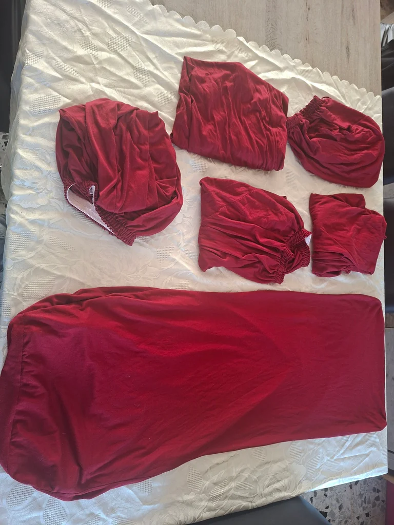 ❤️ Bonjour où Bonsoir ❤️ 🌷 Housse de chaises 🌷 ➡️ Extensible 🏷 Sans Marques 📏 ×6 🎨 Rouge 🧶 92% Polyester - 8% Spandex 👍 En très bon état ✅️ Sans tâche ni trou 🛒 Veuillez consulter mes autres articles, je fais un grand tri. 💸 Prix négociable sur la création de votre lots 📦 Envoie rapide