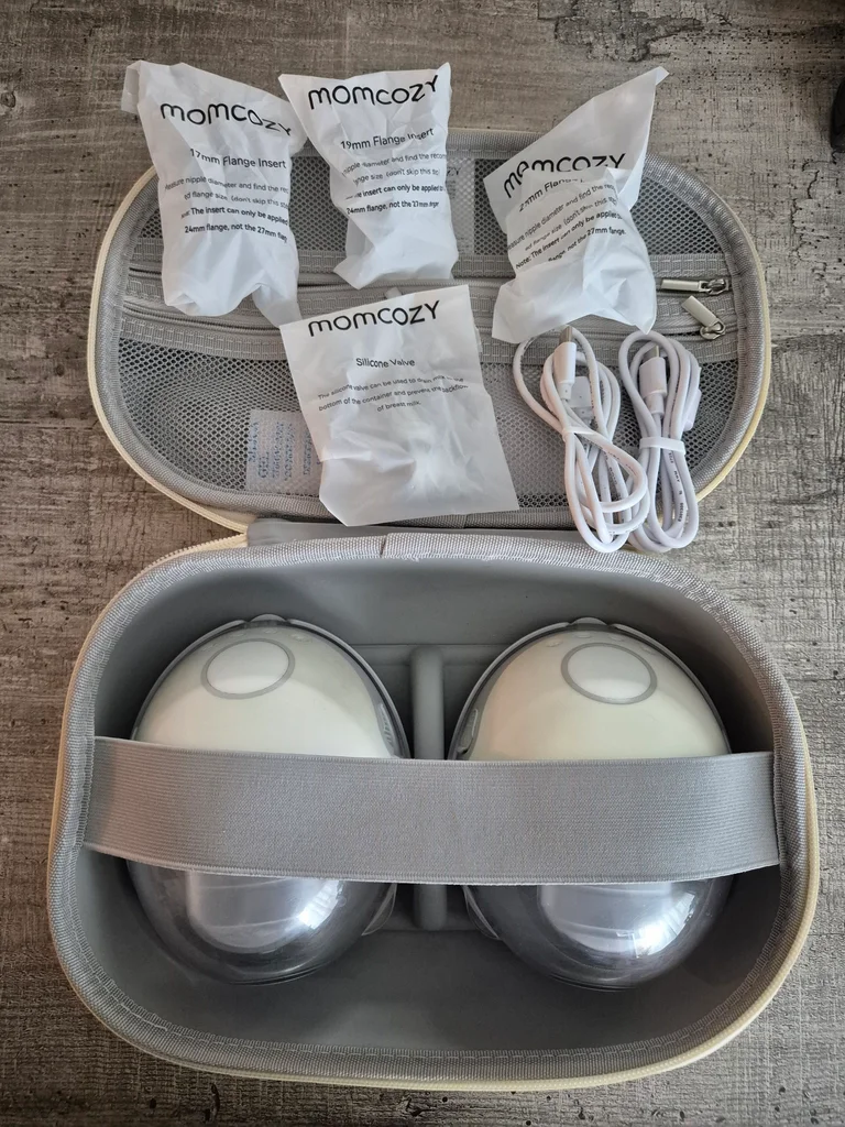 Momcozy M6 en parfait état encore sous garantie Comprend - 2 tire lait complet avec chargeur - double tetrelle 17-19 (neuves) 21 en parfait état - 2 valve de rechanges - étui double de rangement