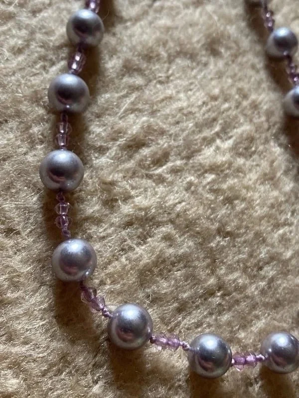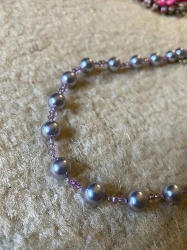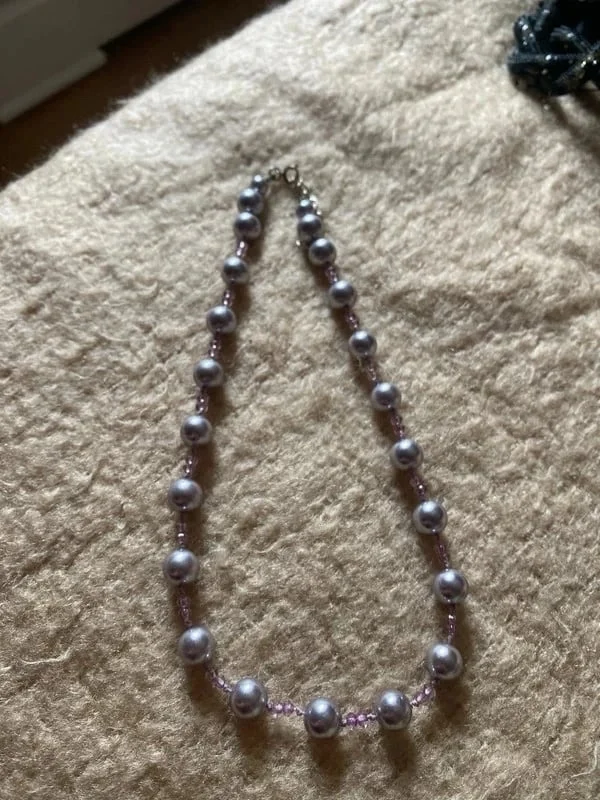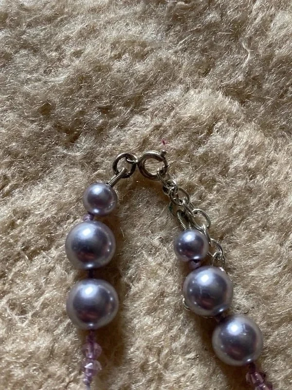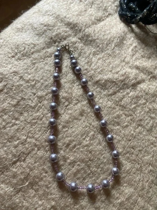 Collier vintage en perles grise et violet/Rose Fraichement arrivée sur OPLA, mais très forte expérience en vente en ligne ! Négociation possible, colis bien emballé et envoyé rapidement ! Testez et faites nous part de votre avis pour bien débuter ! (un petit fav pour l'algo? <3)