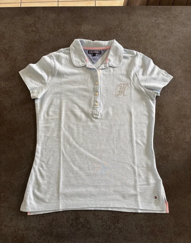 Magnifique polo Tommy Hilfiger bleu clair ✨ 👕 Marque : Tommy Hilfiger 📏 Taille : M 🎨 Couleur : Bleu clair 💎 Détail : Logo en strass, très élégant 💫 État : Comme neuf ✔️ Aucun défaut 💖 Polo chic et original, parfait pour un look casual avec une touche brillante ! 📦 Envoi rapide et soigné 💬 N’hésite pas à me contacter pour plus d’infos ou photos