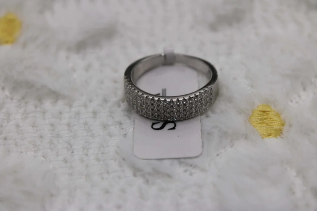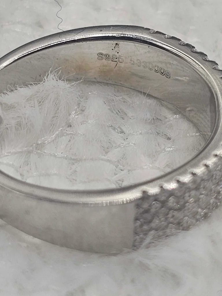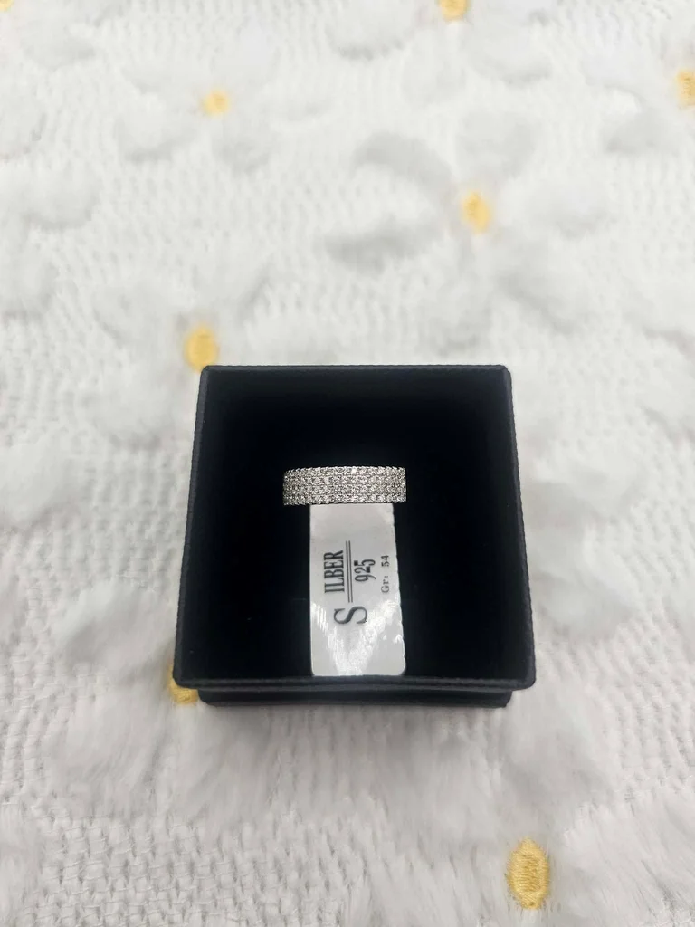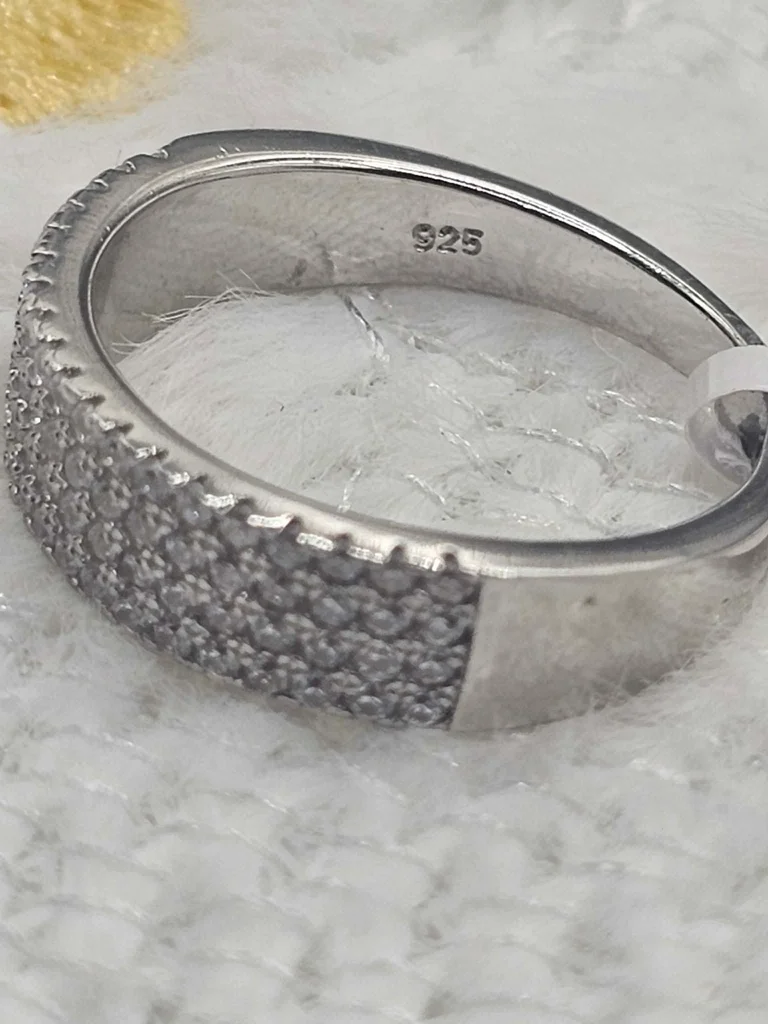 Sublimez votre main avec l'éclat pur du luxe. Cette magnifique bague de style "Éternité" est entièrement confectionnée en Argent Massif 925 (poinçonné S925 à l'intérieur). Son design est un véritable chef-d'œuvre de joaillerie : un pavage triple rang de cristaux étincelants qui capturent la lumière au moindre mouvement. Pourquoi vous allez l'adorer ? Qualité Premium : Argent massif certifié, résistant à l'eau et au temps. Le Style : Un look "Old Money" sophistiqué qui rappelle les grandes maisons de la place Vendôme. Confort : L'intérieur de l'anneau est poli et lisse pour un porté quotidien ultra-confortable. 👗 Conseil Look : Elle se suffit à elle-même pour une touche d'élégance en soirée, ou se marie parfaitement avec une montre minimaliste en acier pour un look "Boss Lady" en journée. ✅ État : Neuf (jamais portée, encore avec son étiquette de contrôle "Ilber 925"). 📏 Taille : 54 (Gr: 54 indiqué sur l'étiquette). 🎁 Envoi : Expédiée sous 24h avec soin