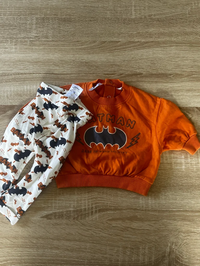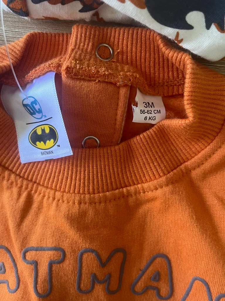 Ensemble Taille : 3 mois jamais porté #ensemblebebe #bebegarçon #batman #dccomics #superheros #vetementbebe #pullbebe #sweatbebe #pantalonbebe #leggingbebe #modebebe #neufavecetiquette #cadeaunaissance #taille3mois #taille62cm #orange