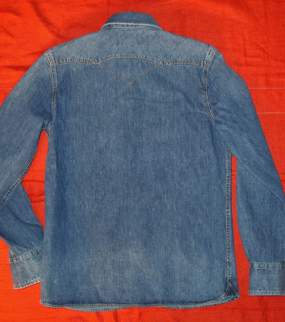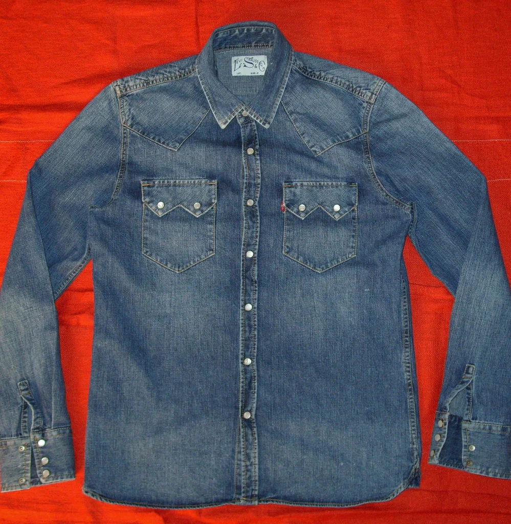 Superbe Chemise en Jean Levi's, coupe slim, col classique, en jean 100 % coton de couleur bleu used, 2 poches poitrine boutonnées, les boutons pression en nacre, taille M, ses dimensions sont: largeur d'épaule 44 cm largeur poitrine 52 cm largeur a la taille 50 cm longueur totale 76 cm longueur des manches 67 cm elle est en état neuve et c'est un modèle authentique garantie