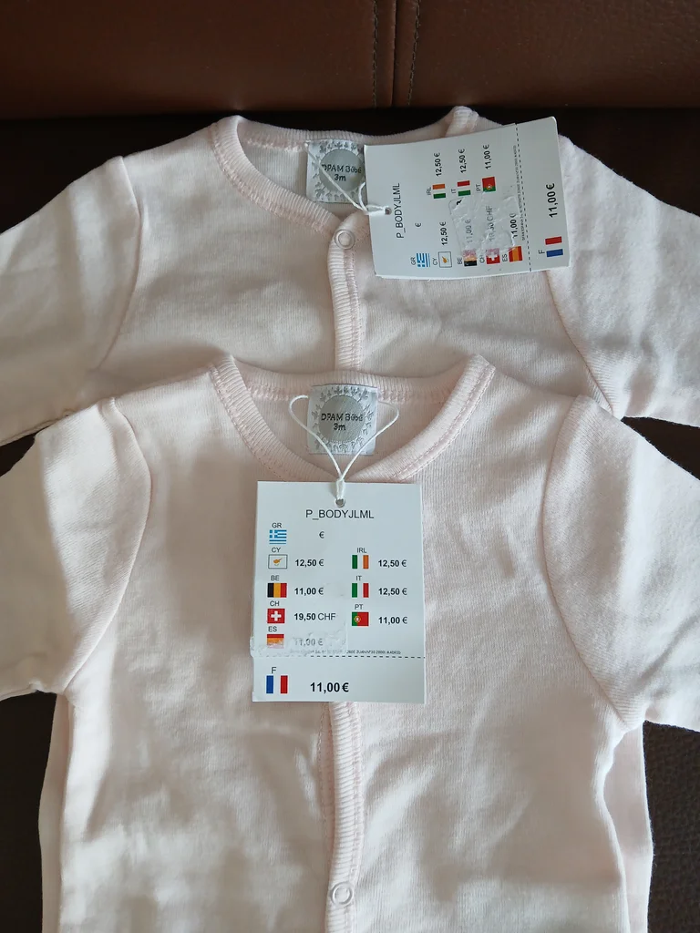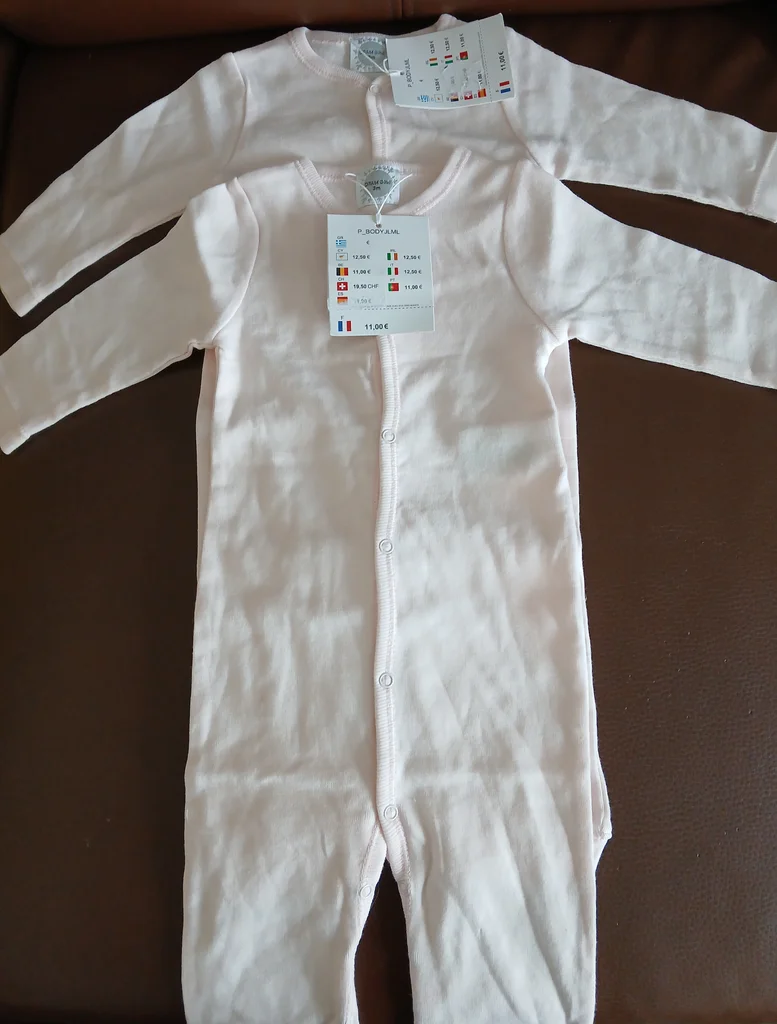 lot 2 pyjamas sans pieds fille DPAM 60 cm 3 mois