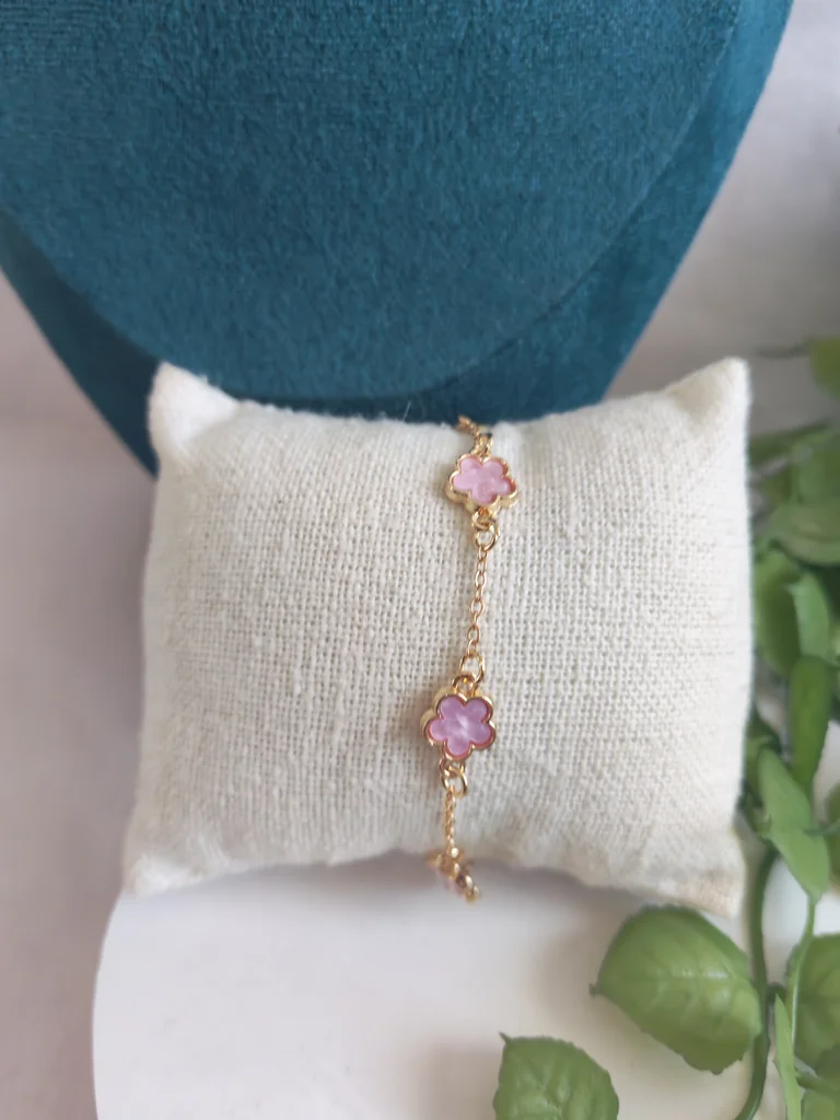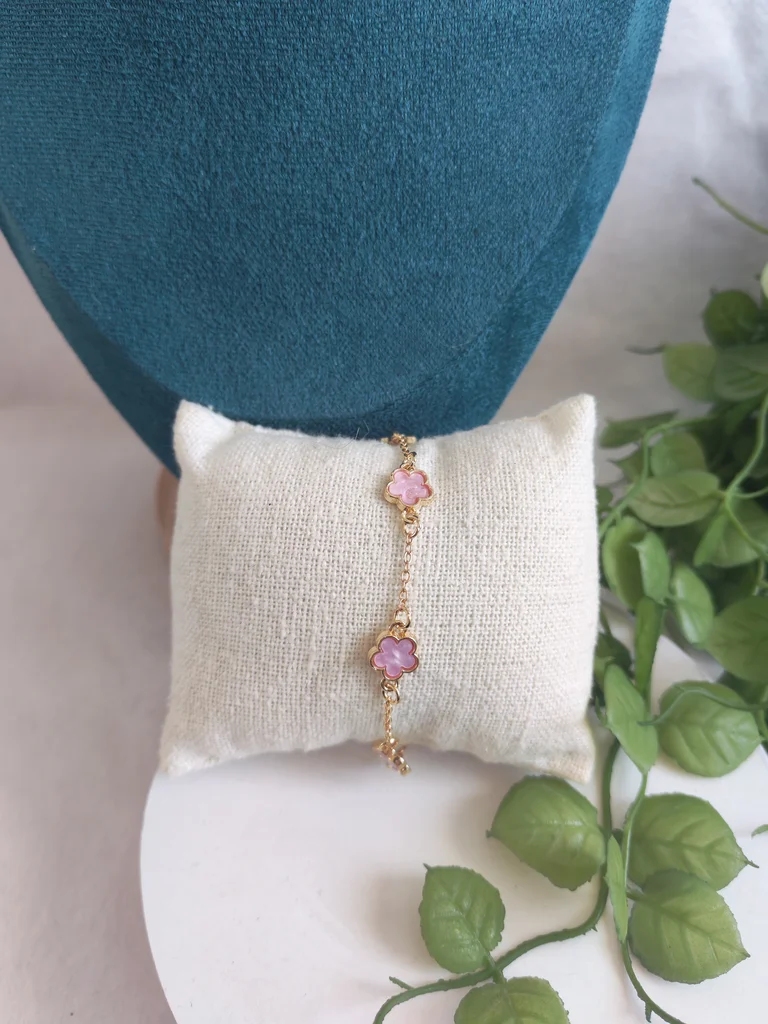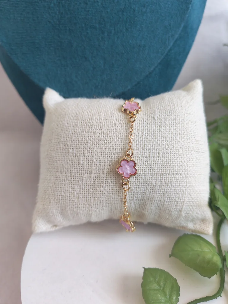 Bracelet femme couleur dore et fleurs rose Neuf jamais porté Envoi rapide et soigné Une petite attention dans chaque commande