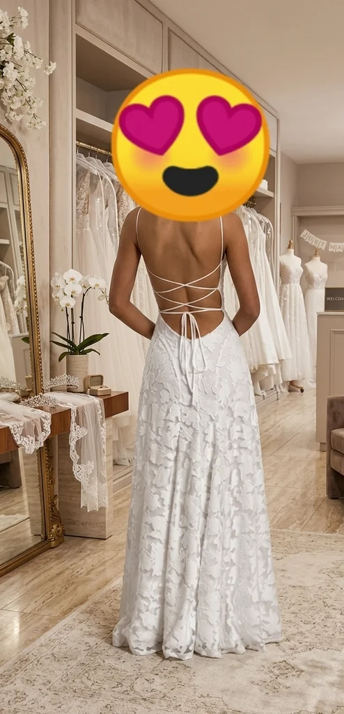 Magnifique robe de mariée avec doublure en dentelle. Dos avec laçage élastique réglable Acheter pour mon mariage en juillet 2026 mais changement de thème Tour de poitrine 86 cm Tour de taille 68 cm Acheter sur zapaka