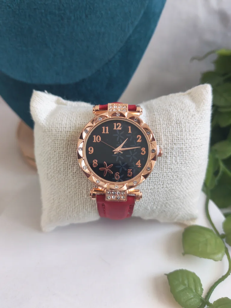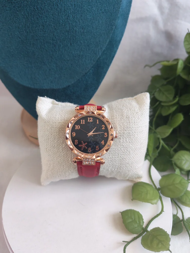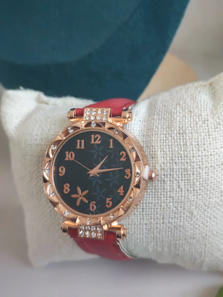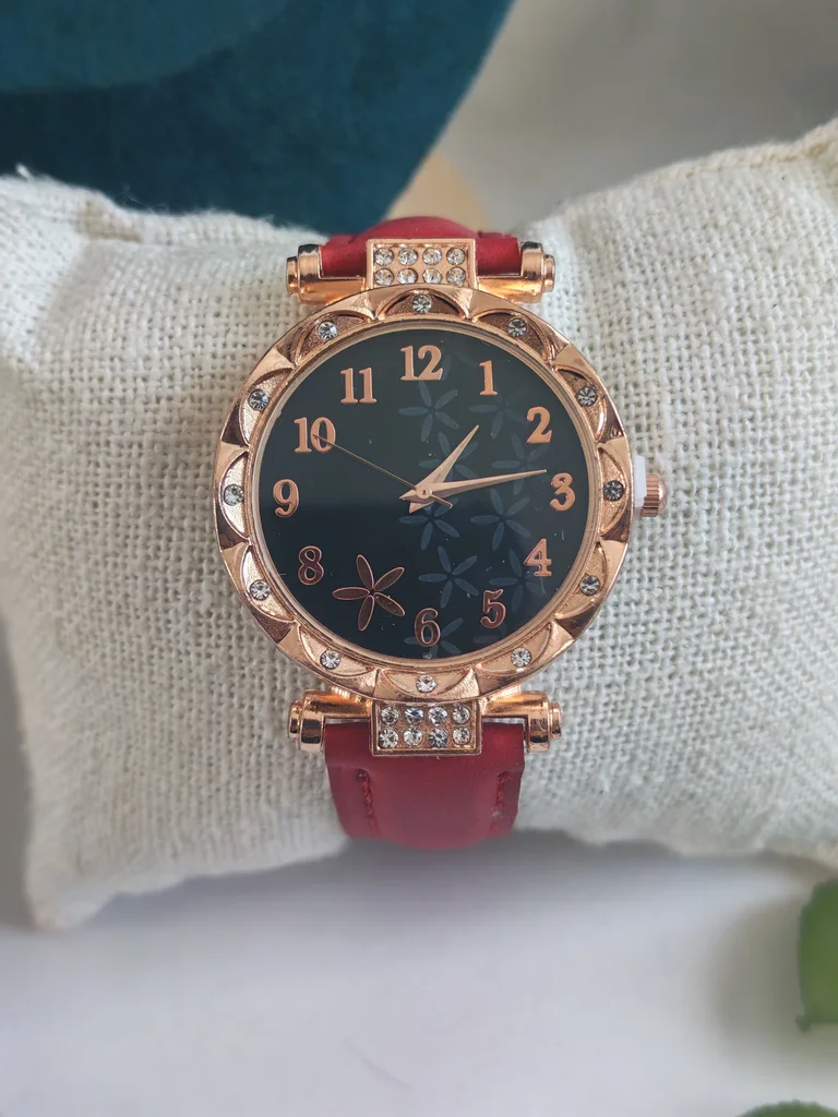 Montre femme couleur dore et rouge bordeaux Neuve jamais porté Envoi rapide et soigné Une petite attention dans chaque commande
