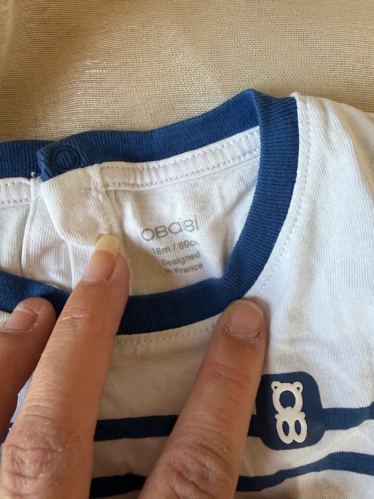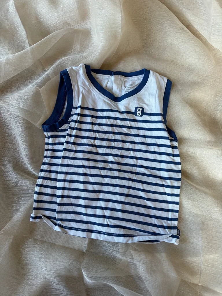 Débardeur rayé marin - Obaïbi - 18 mois Description : Vends ce joli débardeur (t-shirt sans manches) pour bébé garçon de la marque Obaïbi. Style "marinière" classique avec des rayures bleu marine sur fond blanc. • Taille : 18 mois (80 cm) • Couleur : Blanc et bleu marine • Détails : Petit logo ourson sur la poitrine. Boutons pressions à l'arrière du col pour faciliter l'habillage. • État : Très bon état, peu porté. • Style : Idéal pour l'été ou les vacances en bord de mer ! ☀️🏖️ #obaibi #bebegarcon #18mois #80cm #marinière #debardeurbebe #etebebe #modeenfant #stylemarin #petitprix