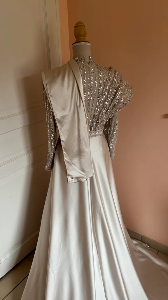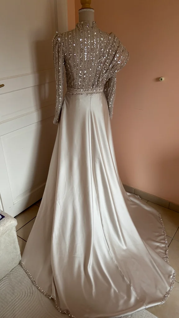 Je vend ma robe de fiançailles porté qu’une fois, elle n’a pas vraiment de défaut juste des petite tache invisible en bas Taille 38/M fait un s je dirais Je la vend avec son voile de la même couleur
