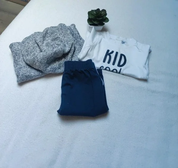 Ensemble 3 pièces garçon Kid cool - Taille 3 mois Ensemble comprenant le gilet à capuche, le t-shirt longues manches et le pantalon. Gilet porté mais pantalon et t-shirt juste lavé.