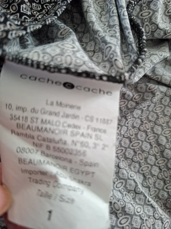 Cache Cache, haut imprimé, très bon état, porté 1 fois Décolleté élégant Dimension aisselles 43 cm environ, polyester élasthanne T 1