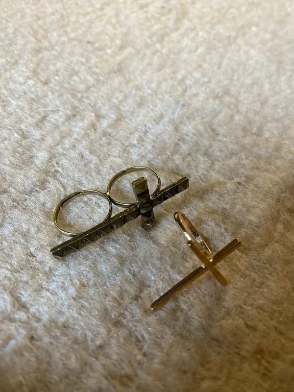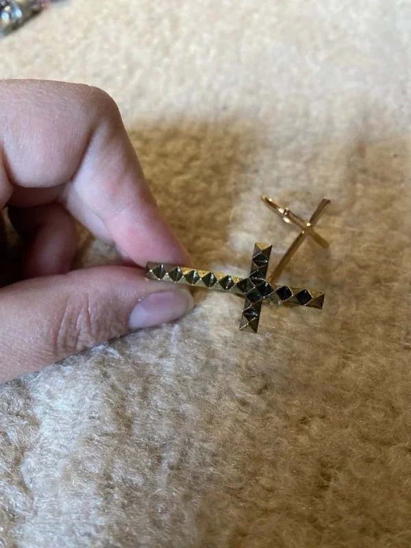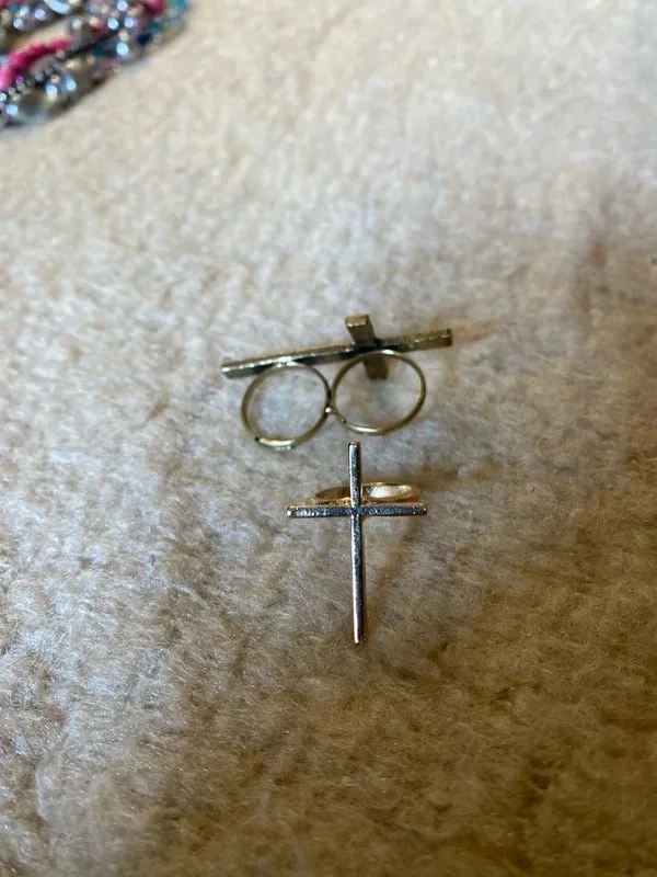 Lot de deux bagues en forme de croix religieuse Couelur doré et vieux doré -Bague en forme de croix cloutée à double passant vintage typique des annees 2000/2010, taille ajustable -bague fine en forme de croix, petite taille (17mm) Fraichement arrivée sur OPLA, mais très forte expérience en vente en ligne ! Négociation possible, colis bien emballé et envoyé rapidement ! Testez et faites nous part de votre avis pour bien débuter ! (un petit fav pour l'algo? <3)