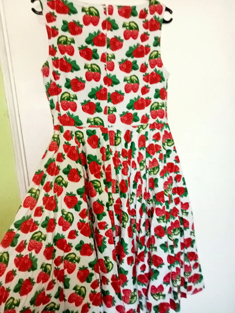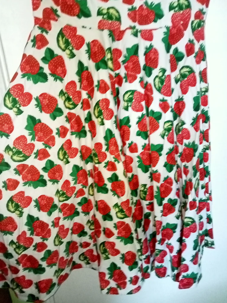 Imprimée fraises 🍓 et framboises. Fermeture éclair au dos. Longueur totale 100 cm