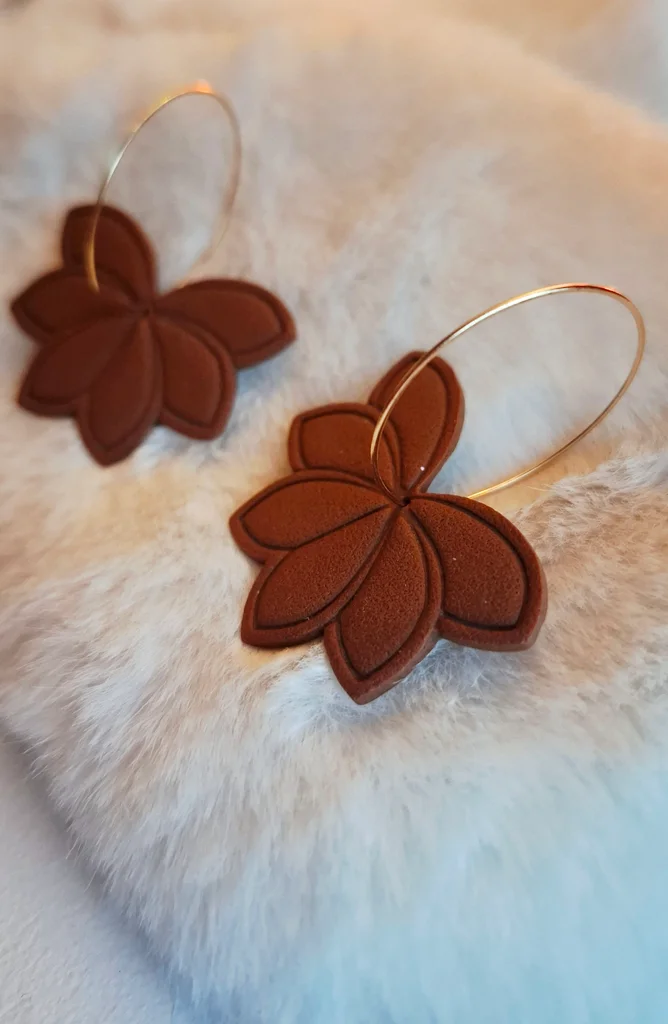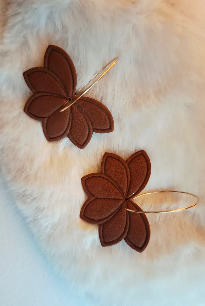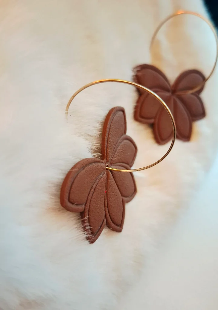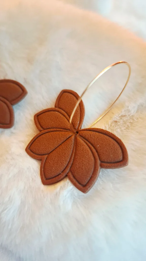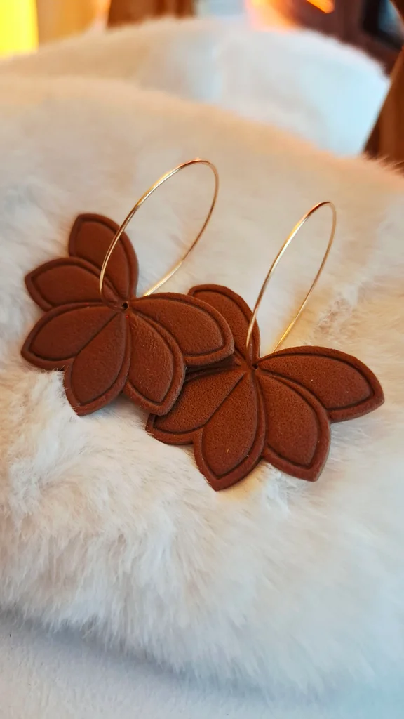 Boucles d’oreilles Lys Chocolat – Modèle unique & fait main ✨ Une création artisanale unique signée #AtelierPetalesdEclats 🌸 Une création florale et chaleureuse, inspirée par la délicatesse du lys et les teintes gourmandes du chocolat, du camel et du bois 🌰🤎 Sa forme évoque un pétale en mouvement, tandis que la couleur marron/camel/chocolat apporte douceur, chaleur et élégance à toutes vos tenues. Une pièce bohème chic, légère et poétique, à porter toute l’année 🌿✨ 🌿 Détails : • Attache dorée en acier inoxydable (anti-allergie & durable) ✨ • Élément en argile polymère façonné et sculpté à la main • Ultra légère et confortable ☁️ • Teinte marron / camel / chocolat poétique • Modèle unique • Pochon cadeau offert sur demande 🎁 Chaque paire est entièrement réalisée à la main avec soin et passion dans mon atelier du Nord de la France 💕 Un bijou élégant et poétique, parfait pour sublimer toutes vos tenues : robe fluide, pull crème, chemise naturelle ou veste camel 🤎✨ 💌 Envoi [Description tronquée]