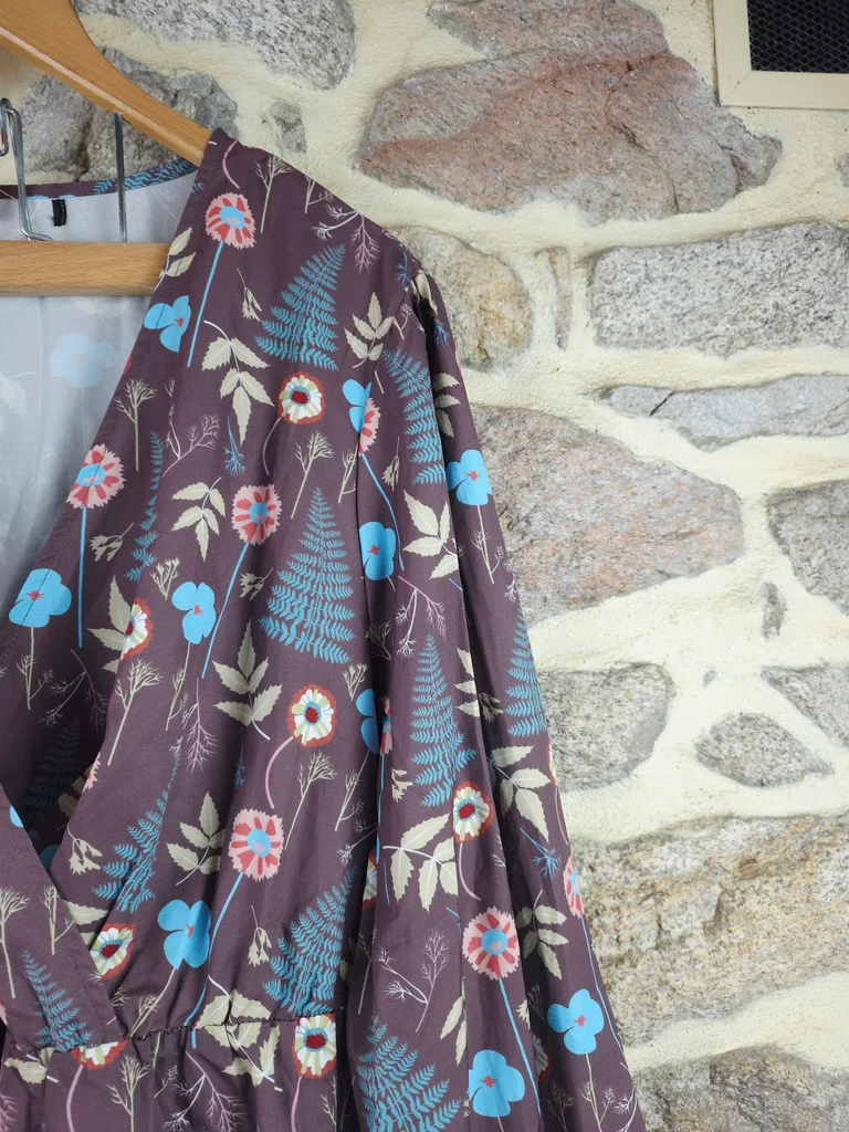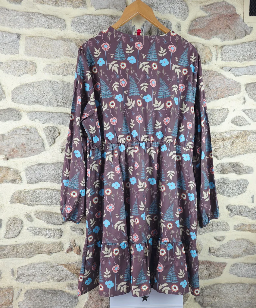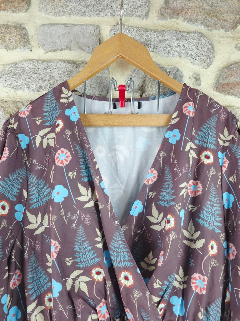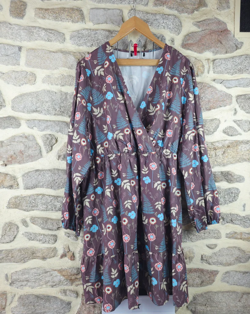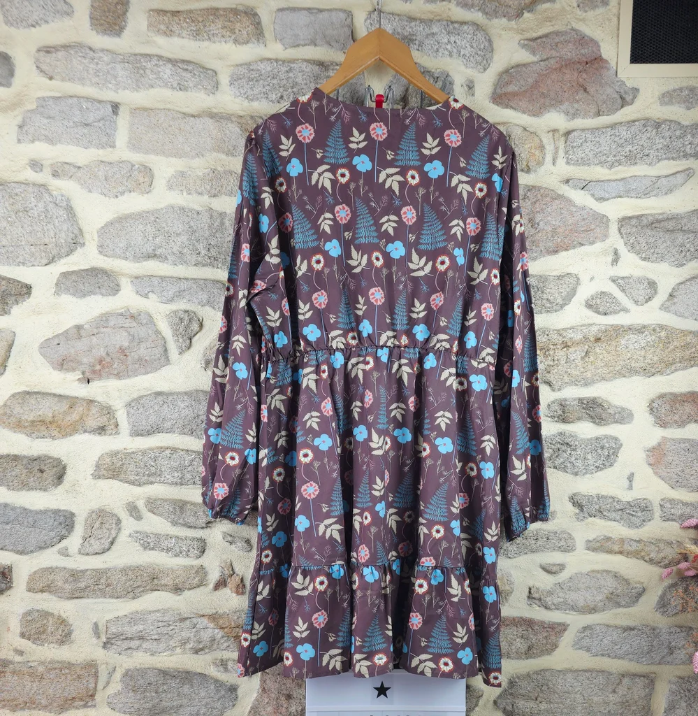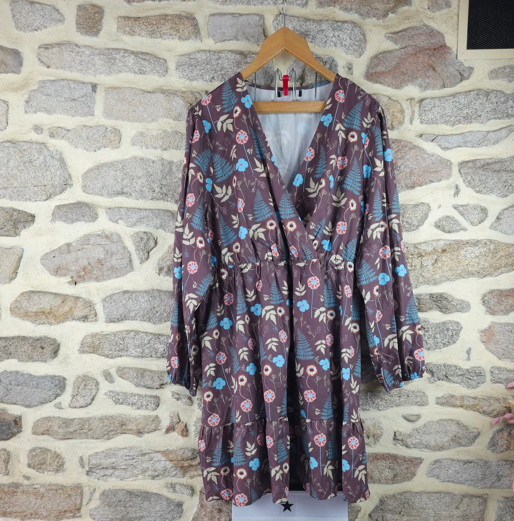 Robe forêt enchantée champêtre multicolore Femme taille 54 marque Boohoo ✴️ Manches longues légèrement amples ✴️ Ceinture assortie ✴️ Taille froncée élastiquée ✴️ Décolleté en V cache-cœur ✴️ Ourlet volanté ✴️ Coupe fluide et confortable ornée de motifs floraux et végétaux inspirés de la nature, incluant des fougères bleu canard/turquoise, des petites fleurs aux tons de corail/rose poudré et de crème/beige. ✴️ Composition => 100 % polyester ✴️ Longueur -> 100 centimètres ✴️ Mesure épaules à épaules => 46,5 centimètres ✴️ Tour de poitrine => 126 centimètres
