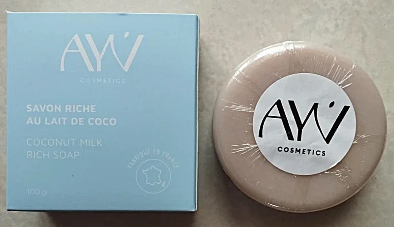 Savon riche au lait de coco Neuf ouvert juste pour les photos Poids 100g Marque AYV