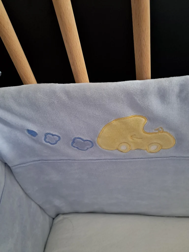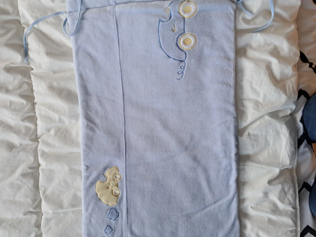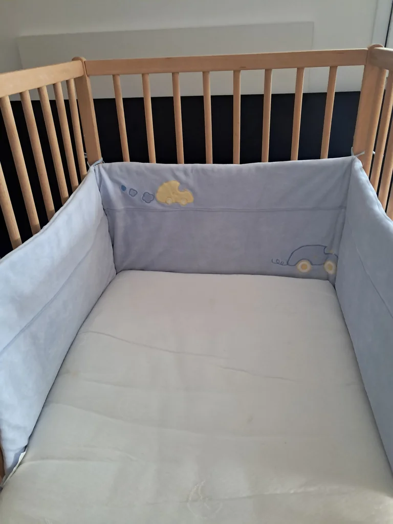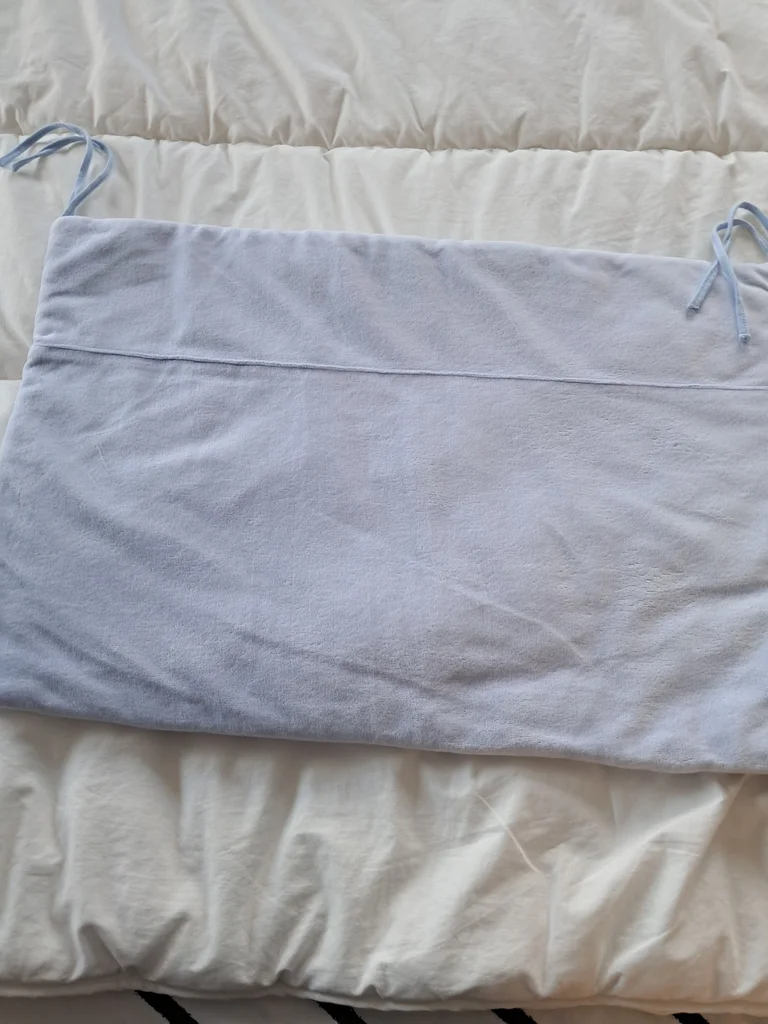 Tour de lit avec lacets Ht 37 cm Premier et troisième côté longueur 57 cm Milieu 61.5 cm