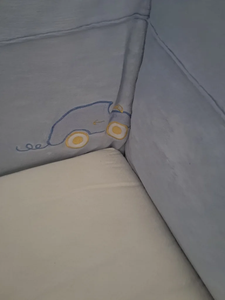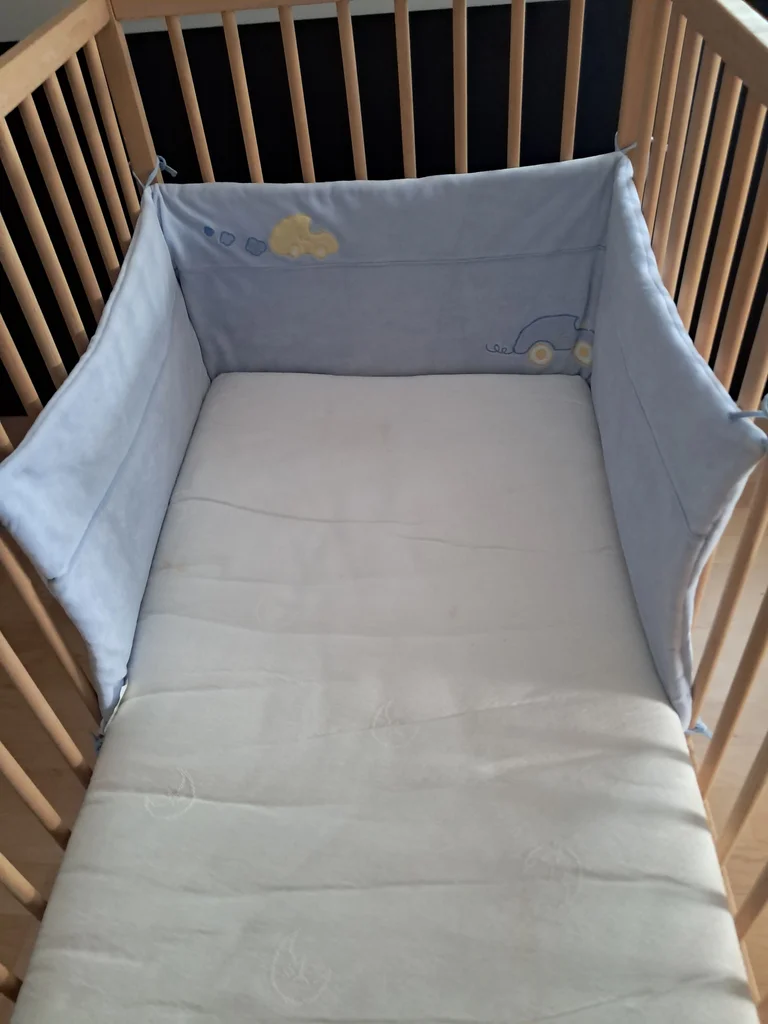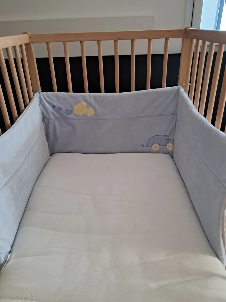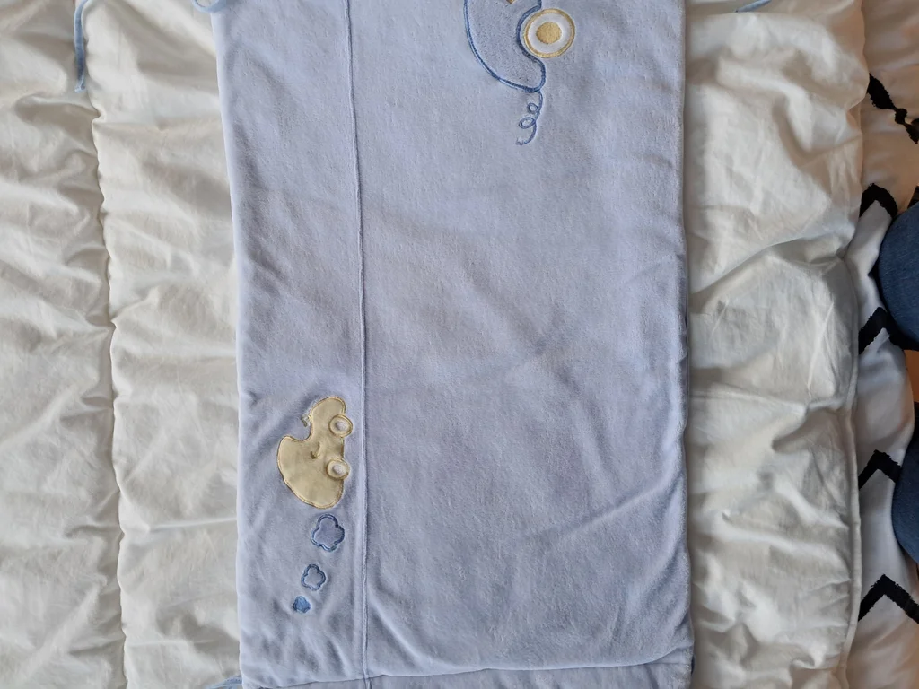 Tour de lit avec lacets Ht 37 cm Premier et troisième côté longueur 57 cm Milieu 61.5 cm