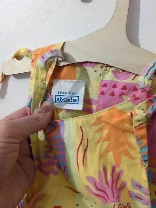 Adorable robe Absorba pour bébé fille, taille 2 ans (86 cm), parfaite pour les beaux jours ☀️ Son tissu est joliment coloré aux tons pastel (jaune, rose, orange, violet) avec des motifs ludiques très doux et enfantins. ✨ Détails visibles sur les photos : Robe sans manches Bretelles à nouer sur les épaules (pratique et ajustable) Boutons dans le dos pour un enfilage facile Taille froncée avec petits volants pour une coupe mignonne et confortable Marque Absorba, reconnue pour la qualité de ses vêtements bébé Une robe pleine de charme, idéale pour l’été, les sorties, ou simplement pour être trop craquante au quotidien 💕 Réductions sur les lots activées! Dressing trié: #fifi8819vêtementsfilles #robeenfant #robebebe #absorba #modebebe #vetementbebe #bebe2ans #robeete #robefille #lookbebe #pastel #vetementenfant #estival #couleur #fille2ans