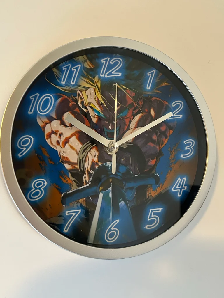 Horloge Trunks dragon Ball Non officielle Diamètre 20 cm Armature en polypropylène et devanture en verre Couleur métal mat Mécanisme à quartz Fonctionne avec une pile AA non fournie Livraison soignée et expédiée rapidement