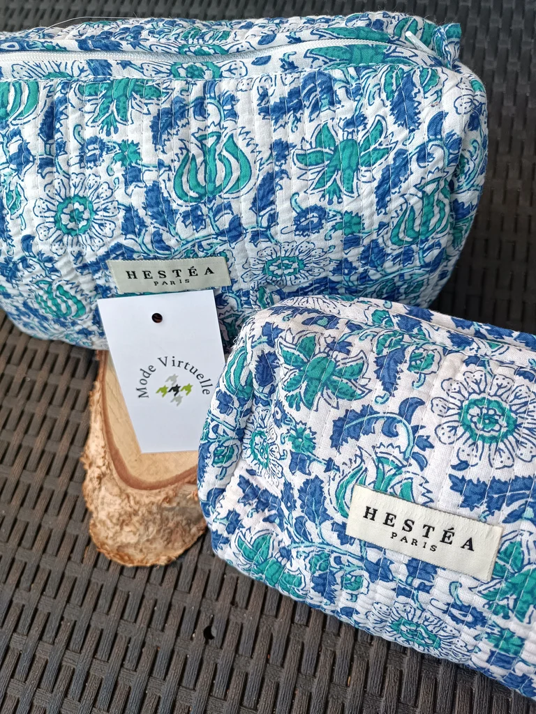 Ensemble 2 Trousses de toilette matelassée bleu pastel imperméable mère et fille