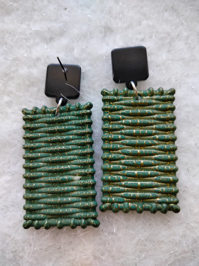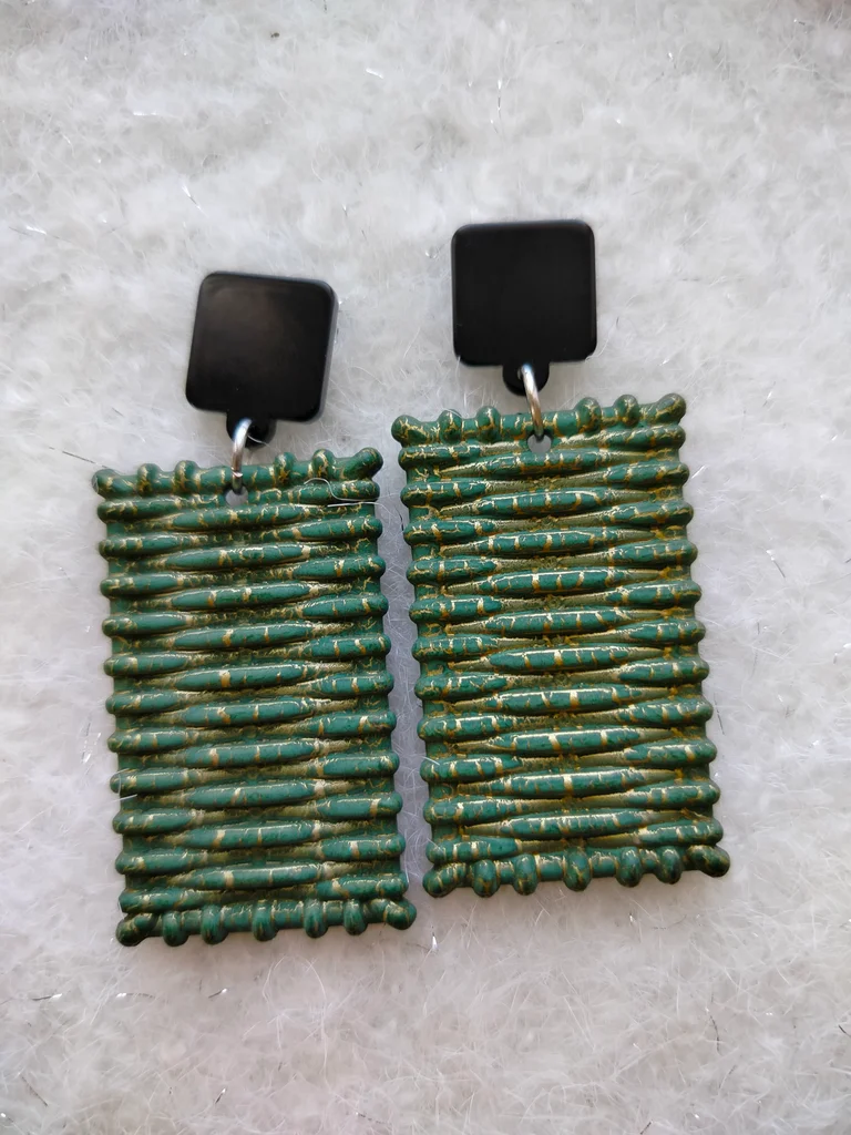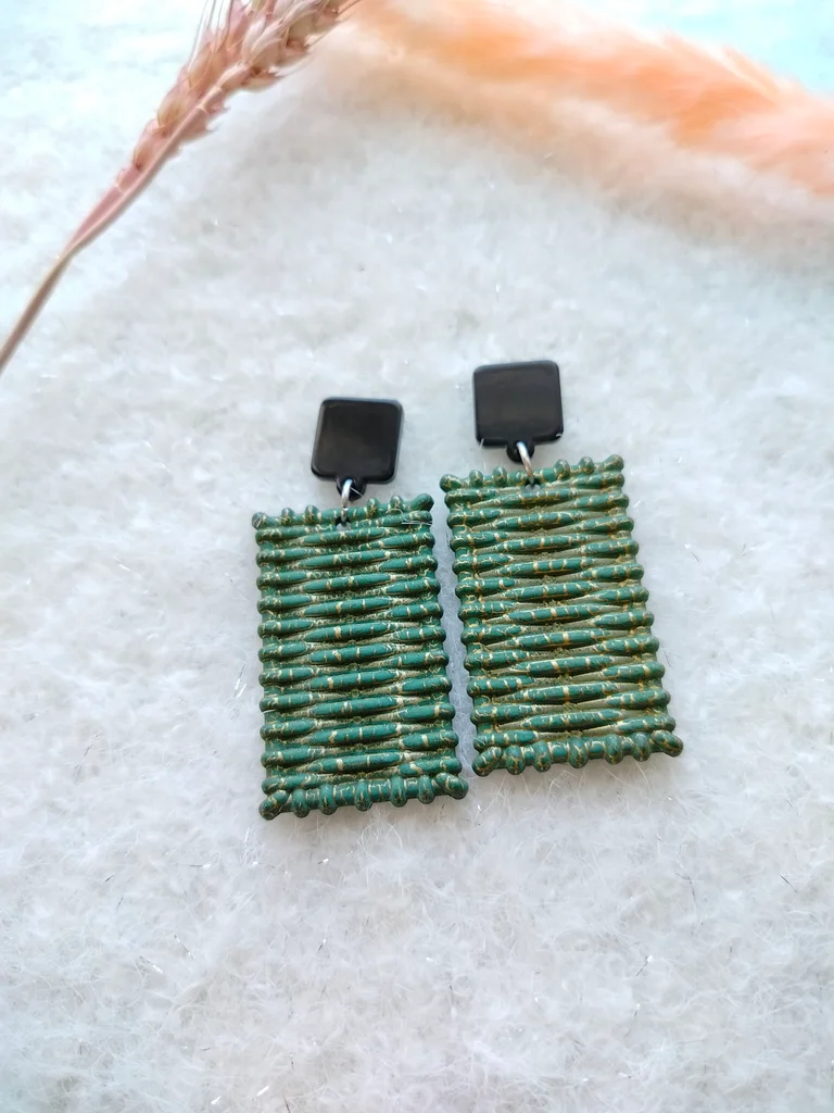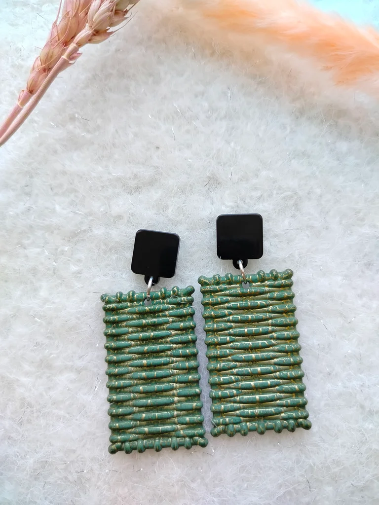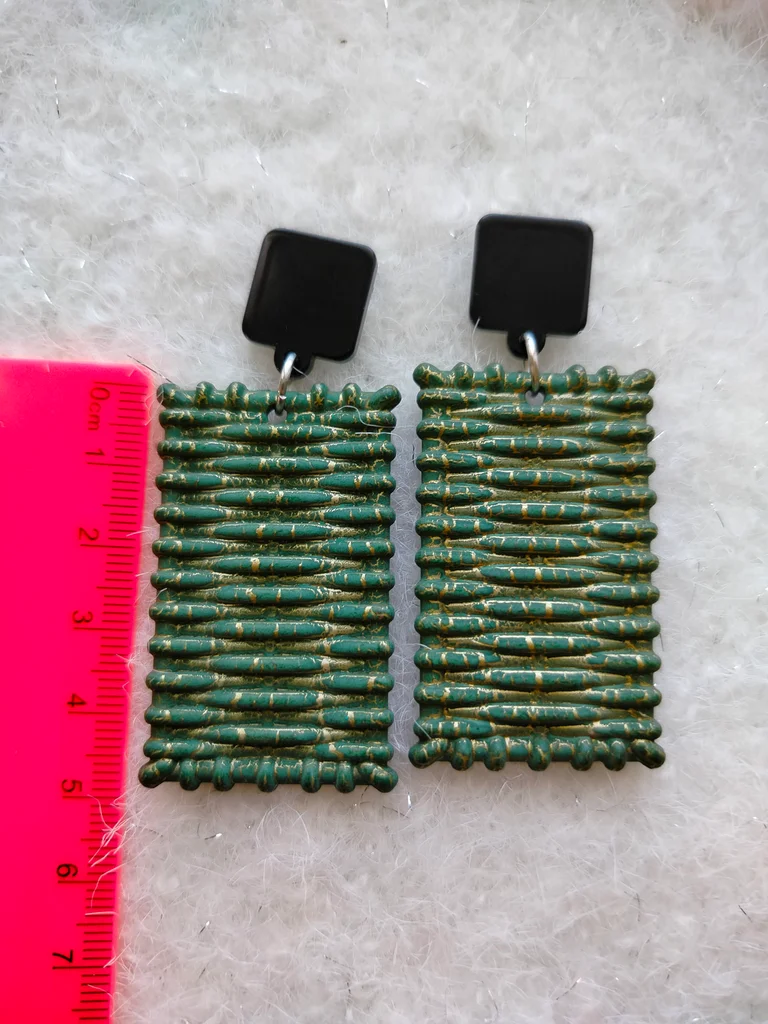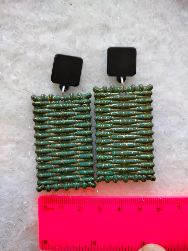 Boucles d’oreilles avec effet rotin vert, montées sur une structure en acier inoxydable avec attache noire. Un modèle original et tendance, idéal pour apporter une touche de caractère à une tenue. 💚 Style : effet rotin 🎨 Couleurs : vert et noir 🔩 Matière : acier inoxydable 📐 Longueur : (voir photo) Légères et agréables à porter. ⚠️ Important Les couleurs peuvent légèrement varier selon la luminosité. De légères irrégularités peuvent être présentes, liées au style du bijou.