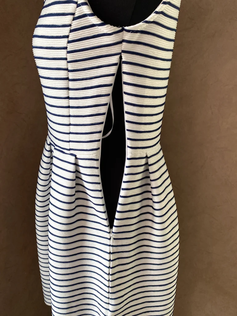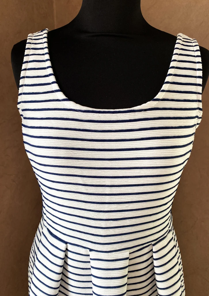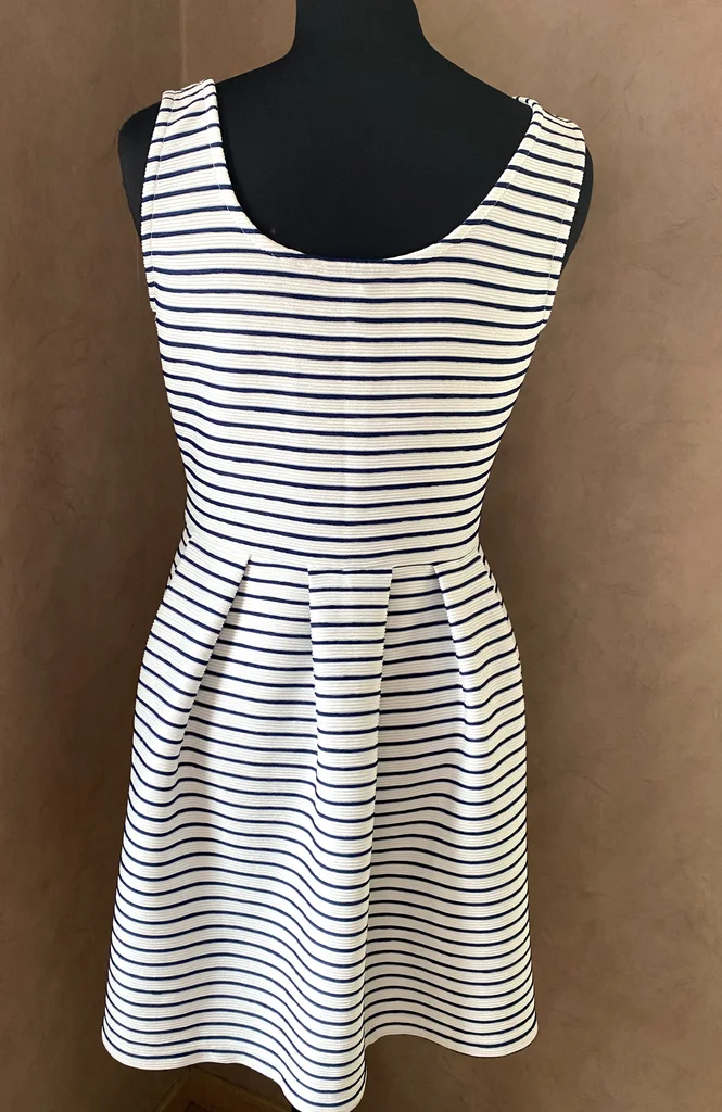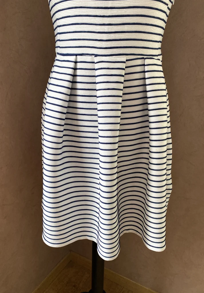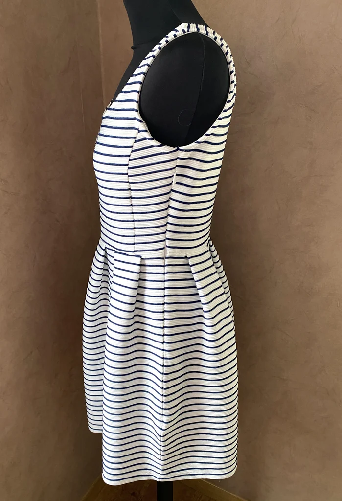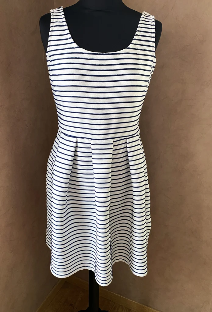 ⚓Superbe robe au style marinière revisité, à la fois élégante et intemporelle 💙 ✨ Description : Robe à rayures fines bleu marine sur fond blanc, esprit bord de mer chic 🌊 Le tissu est texturé avec un effet légèrement plissé/relief, ce qui apporte du caractère et une belle tenue à la robe Taille : S En excellent état, jamais portée Matière confortable et légèrement stretch (76% polyamide, 24% polyester) 👗 Détails : Encolure arrondie élégante Coupe cintrée avec jupe évasée et plis structurés très flatteurs Fermeture éclair discrète sur le côté Tissu épais de qualité, joli tombé Style féminin et structuré, parfait pour un look casual chic 📏 Dimensions : Longueur : 80 cm Aisselle à aisselle : 40 cm 💥envoi rapide du colis 💥