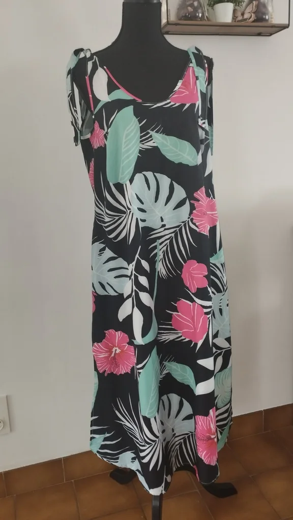 Robe longue noir rose vert Taille XL 44 voir photo pour étiquette