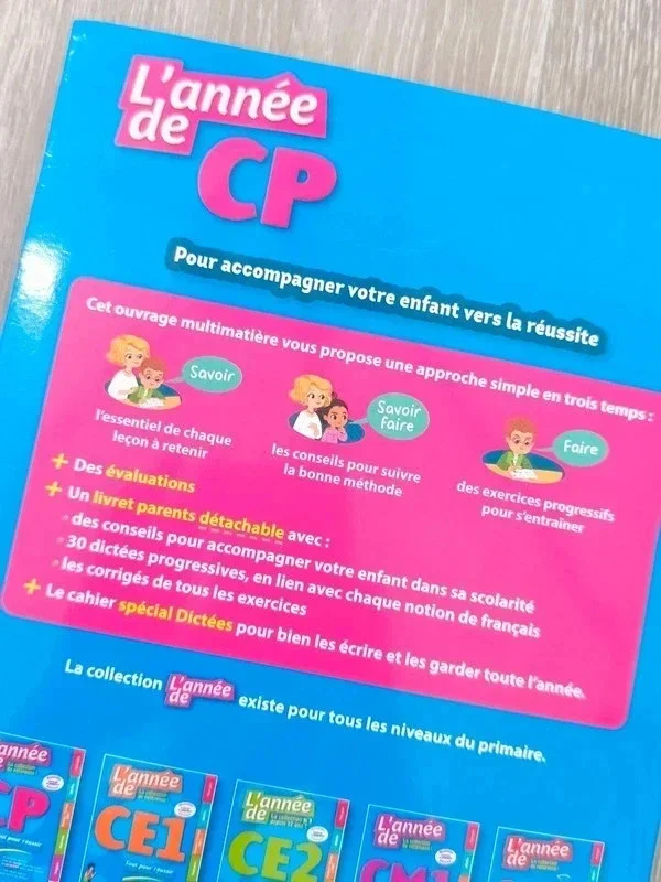 📍Livre N E U F ! 📍L'année de CP, tout pour réussir 🌈Résumé🌈 👉Cet ouvrage propose une approche simple en trois temps : Savoir : l'essentiel de chaque leçon à retenir. Savoir-faire : les conseils pour suivre la bonne méthode. Faire : des exercices progressifs pour s'entraîner. En + : Des évaluations. Un livret parents détachable avec : - des conseils pour accompagner l'enfant dans sa scolarité. - 30 dictées progressives, en lien avec chaque notion de français. - les corrigés de tous les exercices. Avantage exclusif : Le cahier spécial Dictées pour bien les écrire et les garder tout au long de l'année. 👉Pour trouver d'autres livres c'est par ici : 🔎#elisabethLivre 📫⏳ Envoi rapide et soigné.