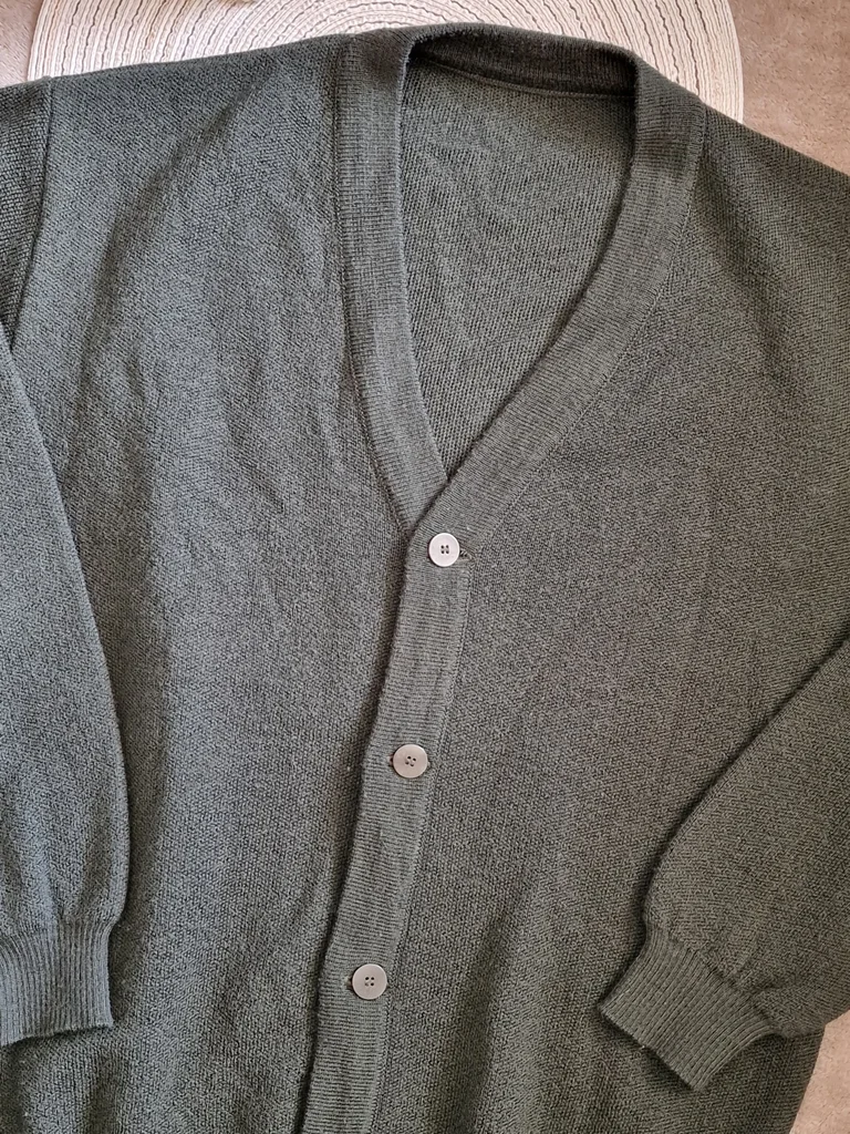 Je vends ce superbe gilet pour homme, à la fois élégant et intemporel. Sa couleur vert profond (vert sapin) est idéale pour toutes les saisons. Il s'agit d'une pièce de belle qualité, fabriquée en France, ce qui garantit de belles finitions et une bonne tenue du tissu. Détails du produit : Taille : 3 (correspond à un L). État : Excellent état. Il a été très peu porté et a été parfaitement conservé. Matière : 50% Laine et 50% Acrylique Couleur : Vert. Style : Col V, boutonnage classique sur le devant, bords-côtes aux poignets et à la taille. Origine : Fabrication française. Ce gilet est parfait pour un look décontracté avec un jean, ou plus habillé porté sur une chemise. Il est très confortable et doux. N'hésitez pas à me contacter si vous souhaitez plus d'informations ou des mesures précises Envoi rapide et soigné.