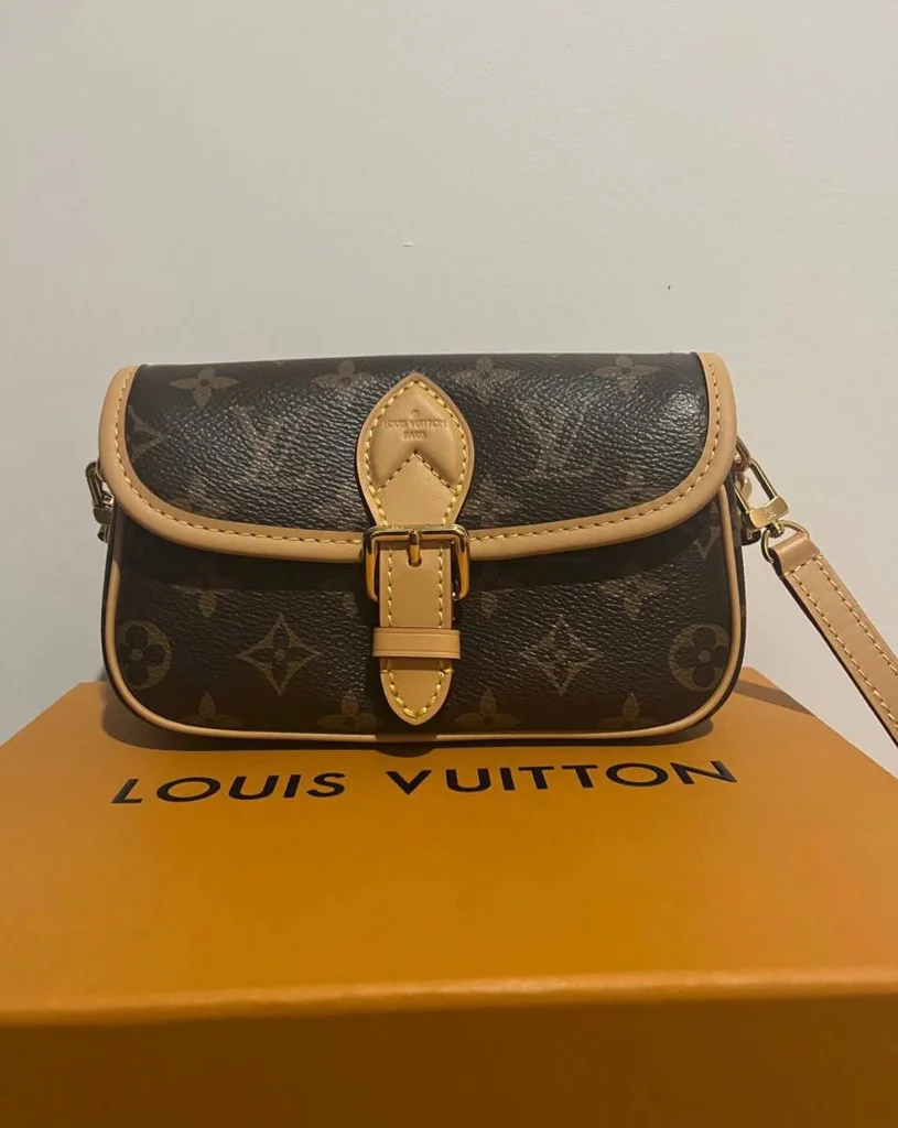 Sac Louis Vuitton Diane Monogram Canvas / Vachette naturelle Toile monogramme LV iconique Garnitures cuir vachette naturel Boucle dorée signature LV Rabat avec fermeture boucle Bandoulière cuir réglable Dorures or Boîte Louis Vuitton incluse 📦 Pièce de luxe authentique 🏆 État : Très bon état ✅
