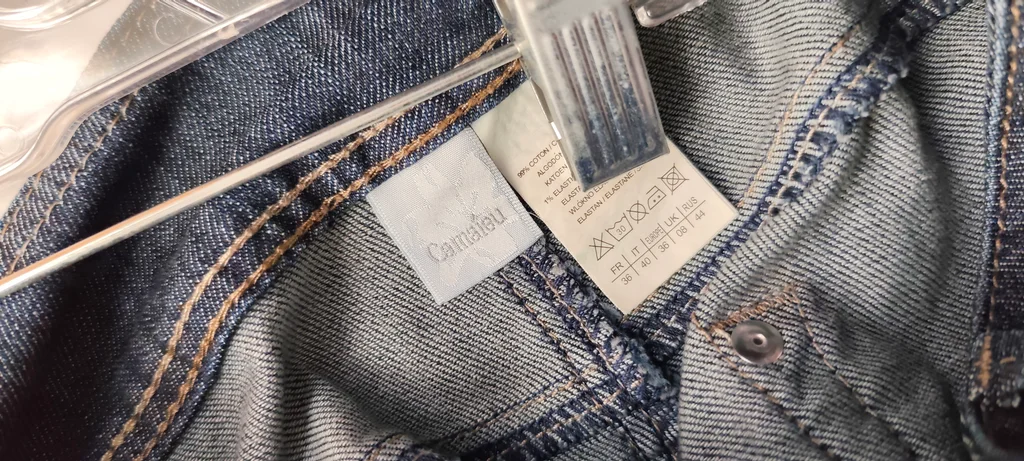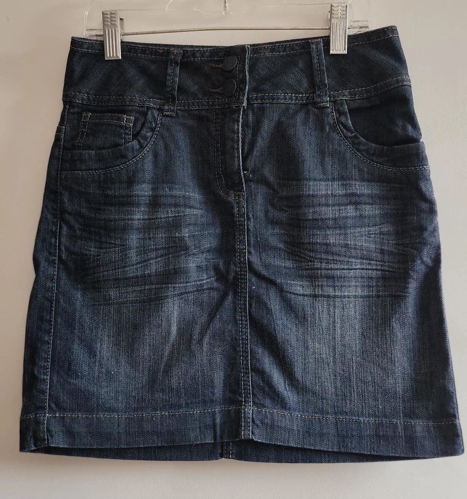 Type de produit : Jupe en jean Marque : Camaïeu Taille : 36 Couleur : Bleu foncé Matière : Jean légèrement stretch Caractéristiques : Coupe droite courte, taille haute avec double bouton, poches avant et arrière, passants pour ceinture, effet légèrement délavé sur le devant Hashtags : #femmevale62100 #jupevale62100 #taille36vale62100 #camaieu #jupeenjean #jupe36